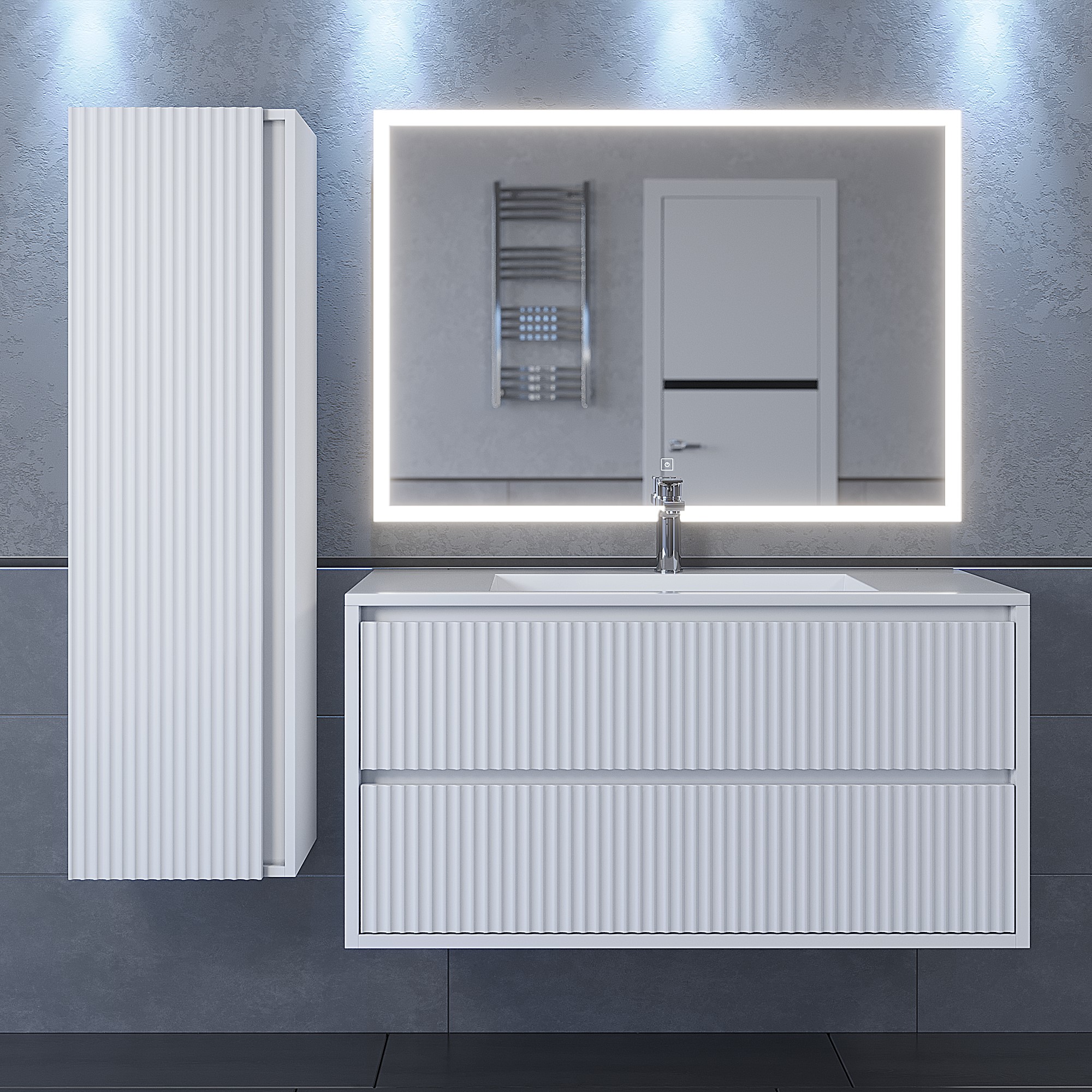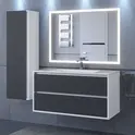 Цветовые решения тумб Uperwood Next: белая матовая и белая/графит в матовом исполнении (графитовый фасад и белые боковины).