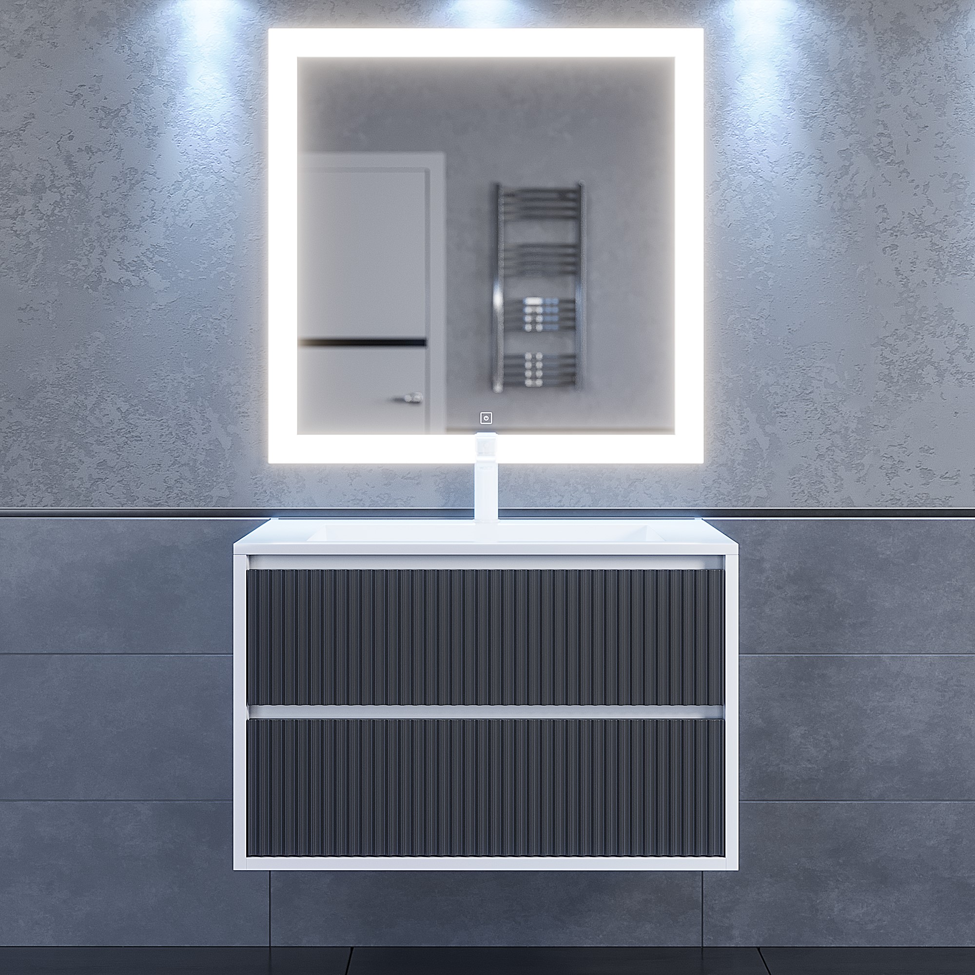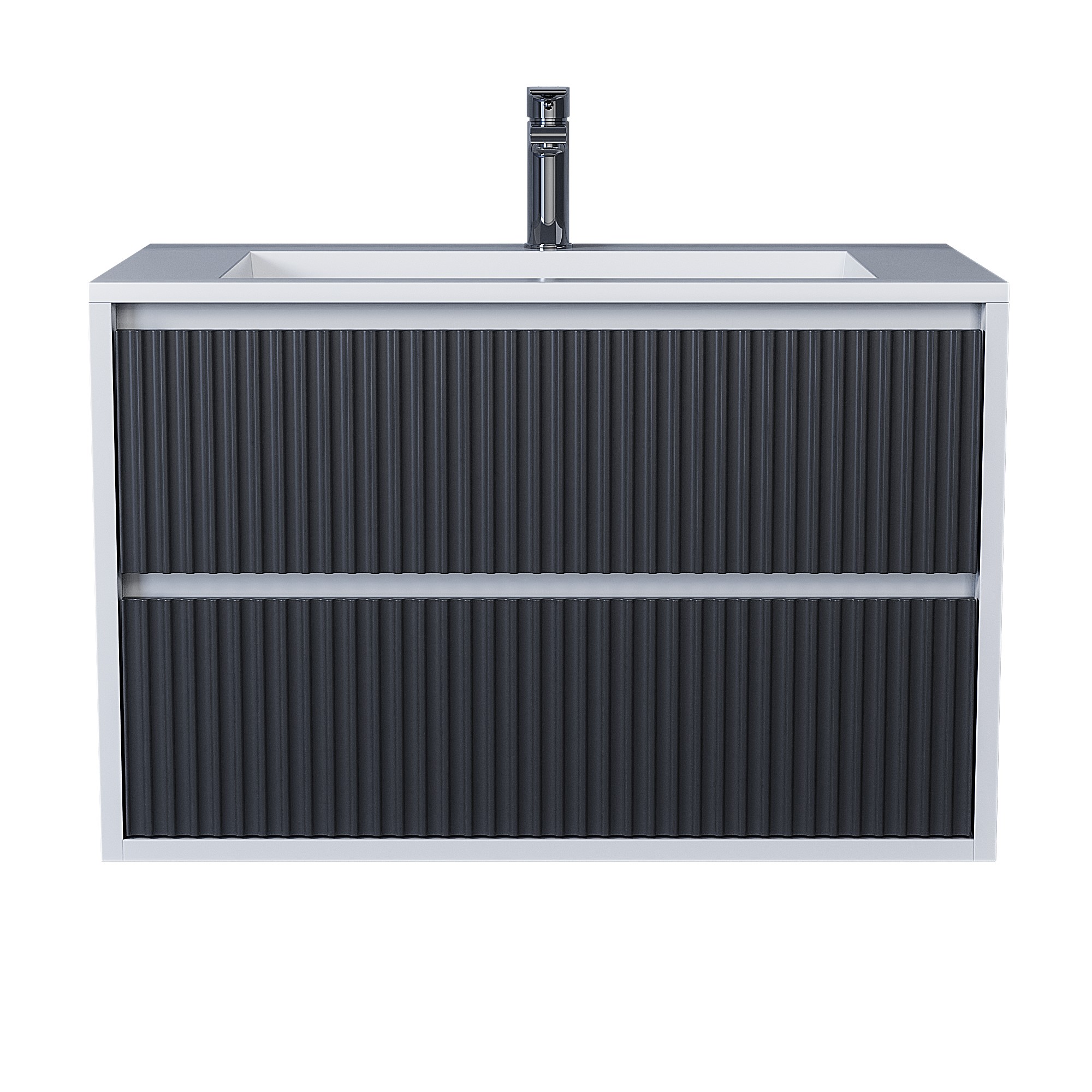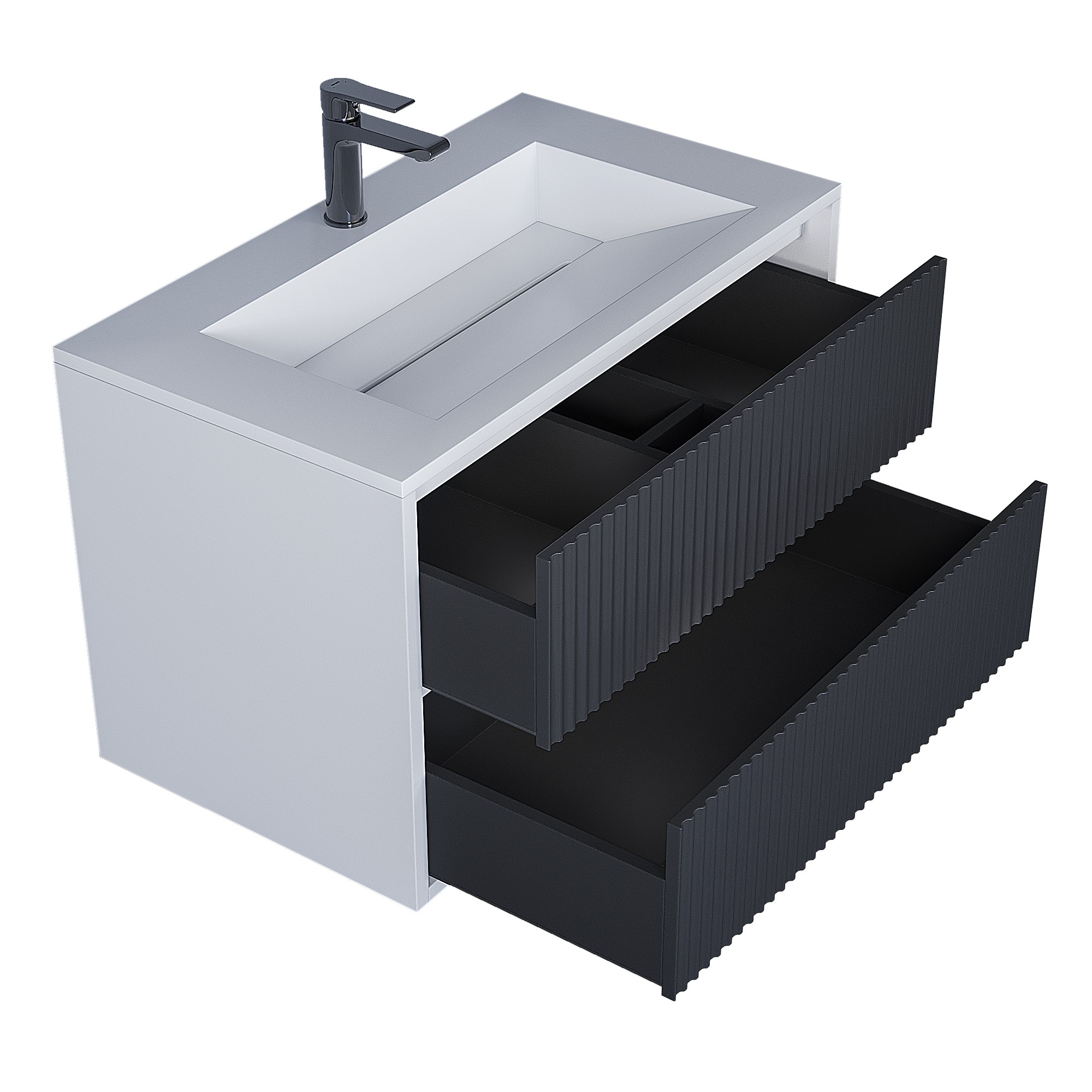 Цветовые решения тумб Uperwood Next: белая матовая и белая/графит в матовом исполнении (графитовый фасад и белые боковины).