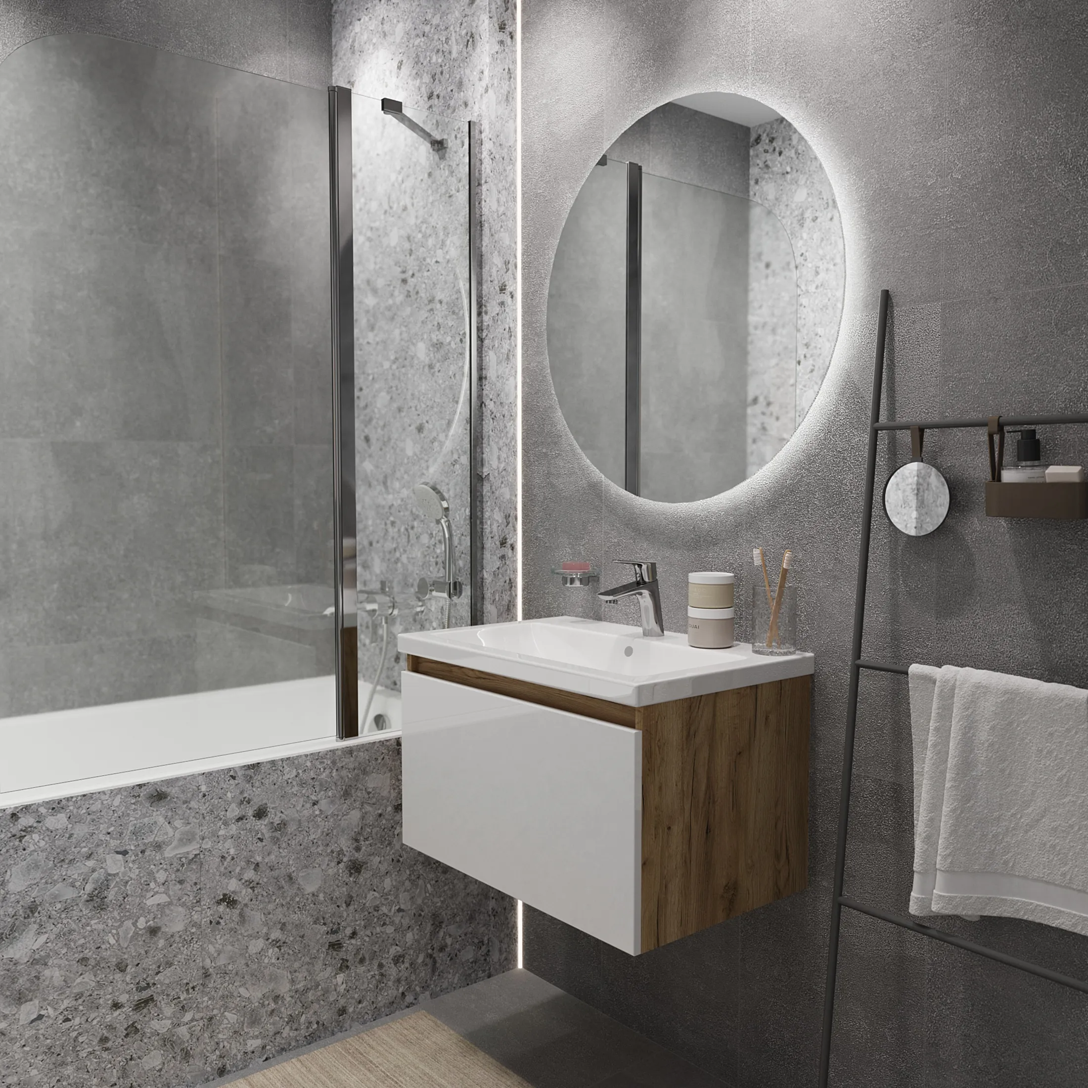 Практичная тумба Aris украсит ванную комнату. Вы сможете поддерживать порядок и чистоту, разместив в ее ящиках необходимые принадлежности.