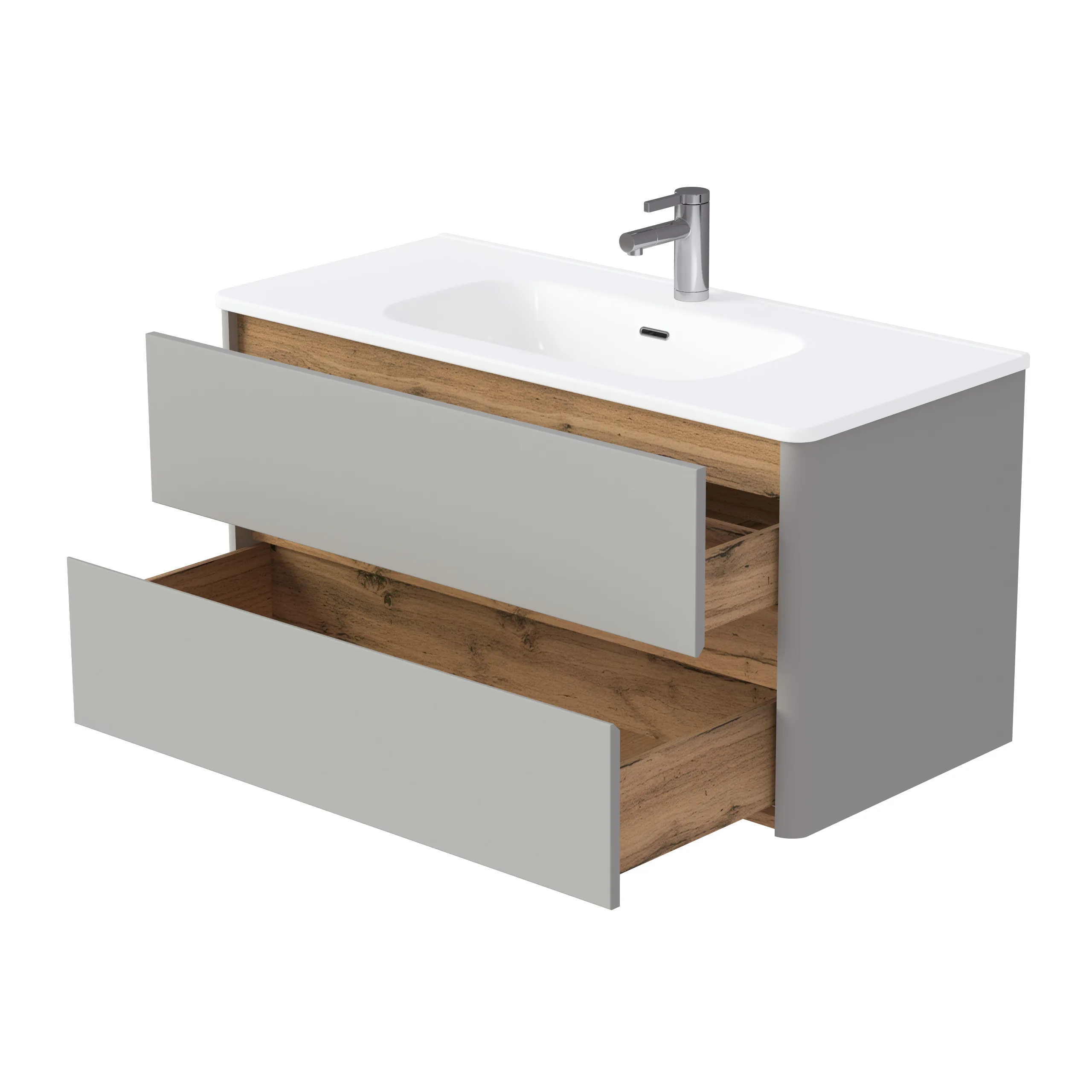 Серая подвесная тумба под раковину* Monа – минималистичная модель, созданная по актуальным тенденциям мебели для ванной. Тумба в ванную Monа— не просто элемент мебели, а символ гармонии и порядка в пространстве ванной комнаты.