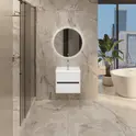 • Материал корпуса и фасада – МДФ, покрытый матовой итальянской эмалью. Благодаря этому тумба сохранит первозданный вид на долгие годы в условиях повышенной влажности.