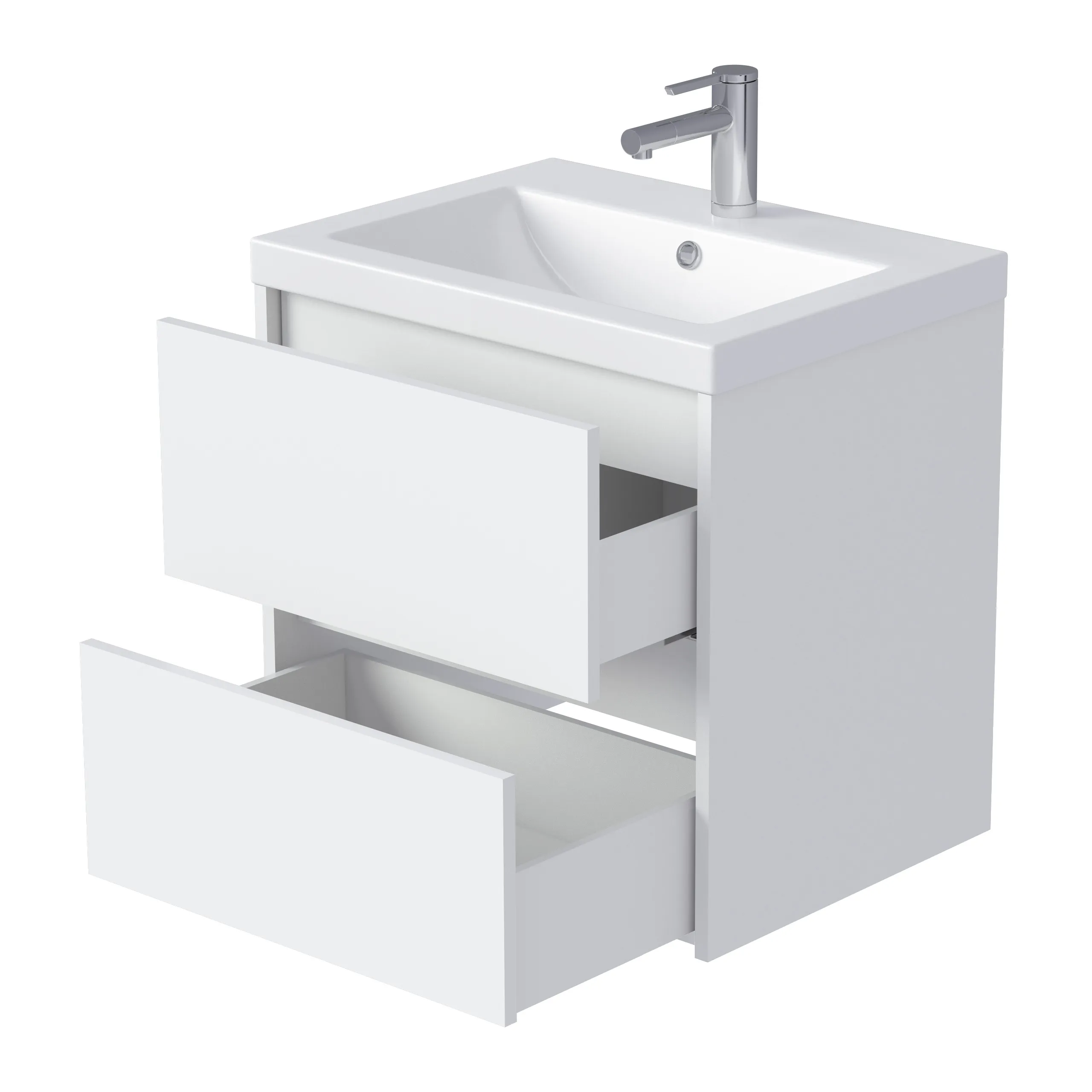 Белая подвесная тумба Veil под керамическую раковину*– минималистичная модель, созданная по актуальным тенденциям мебели для ванной. Благодаря универсальности, она подходит как для классических, так и для современных интерьеров.