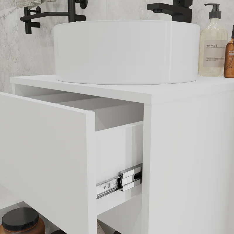 Белая подвесная тумба Veil – минималистичная модель, созданная по актуальным тенденциям мебели для ванной.