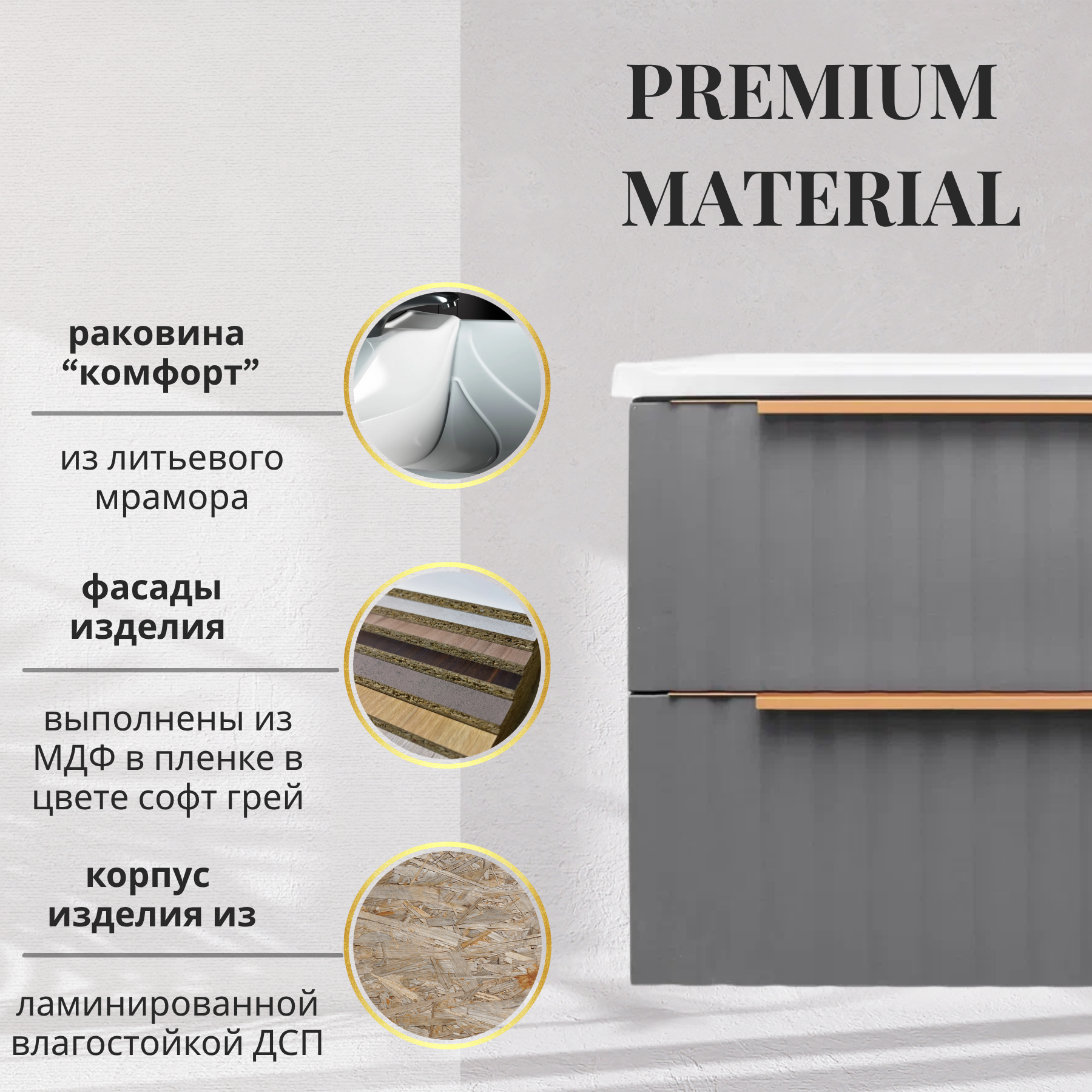 Тумба подвесная ACWEN ГРАЦИЯ 70 с раковиной, грей софт