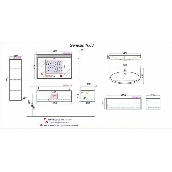 В комплект входит: тумба под раковину, раковина.