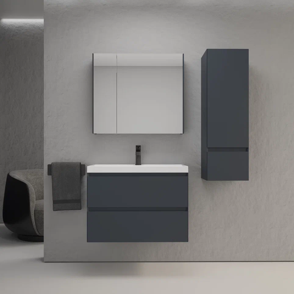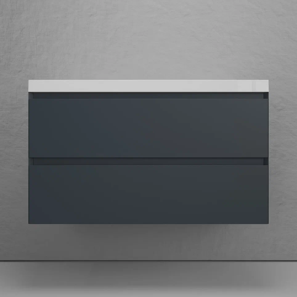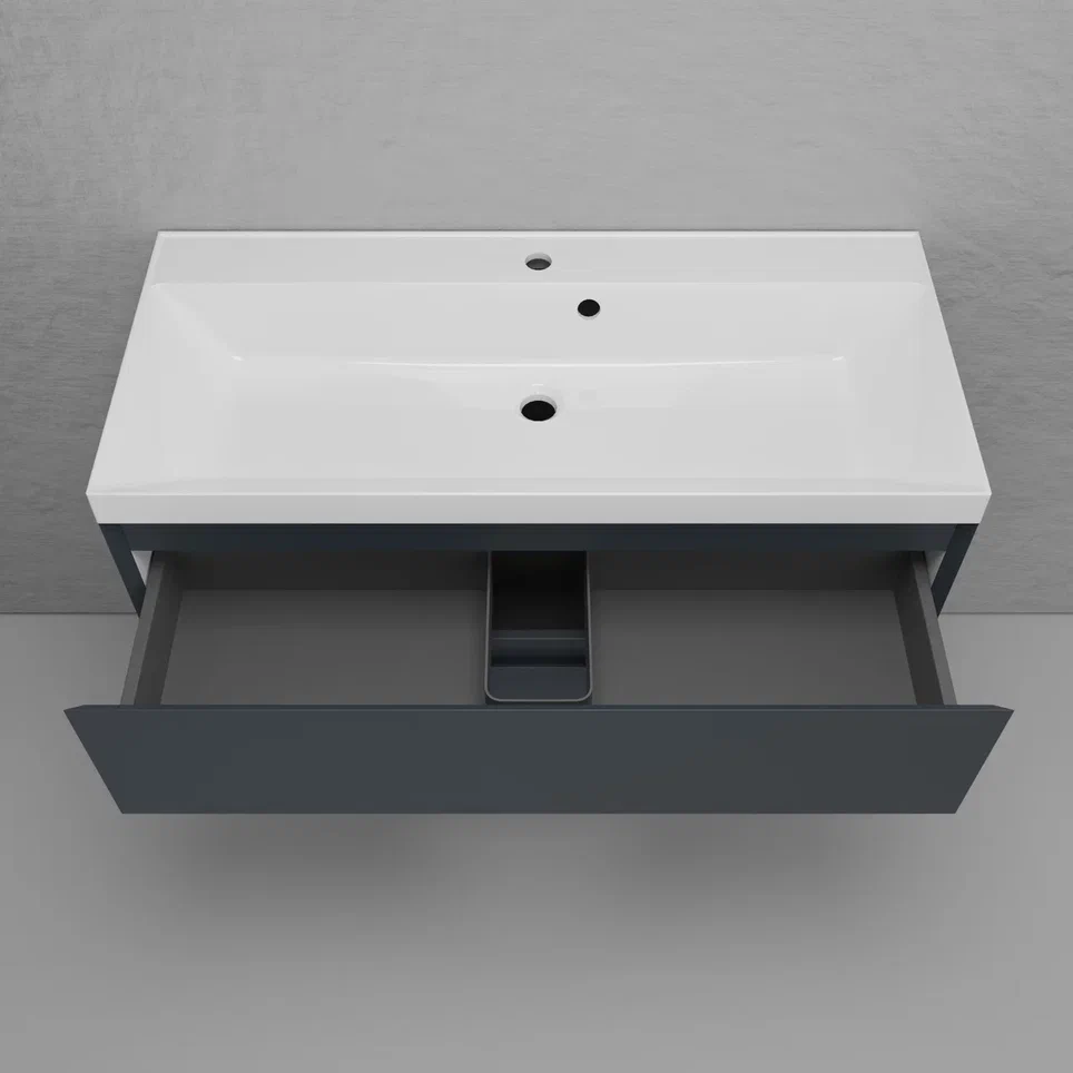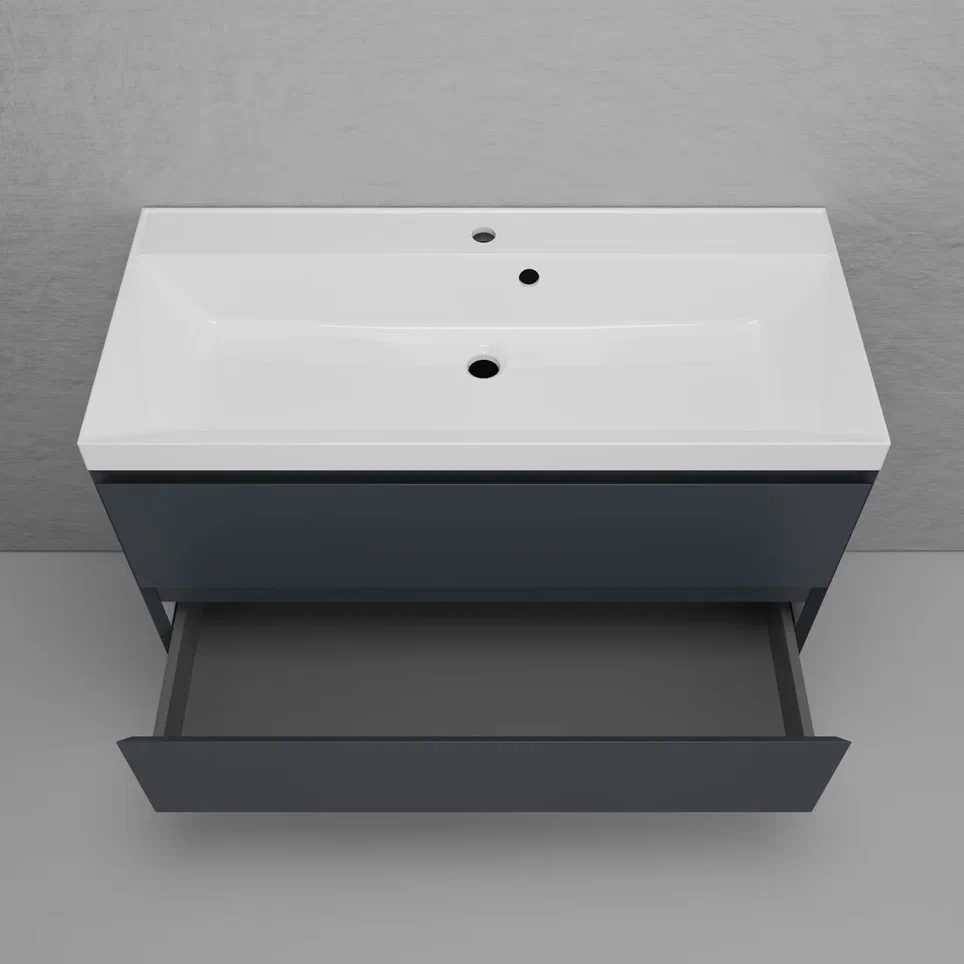 Тумба подвесная "Манхэттен 100/80/70/60" ЭМАЛЬ с раковиной ASTI , 2 ящика PLUS графит
