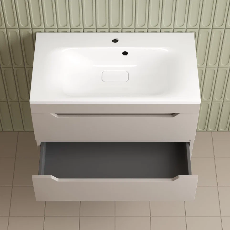 Фасады и боковины из МДФ толщиной 16 мм в пленке ПВХ премиум класса. Ящики и фасады с системой плавного закрывания с доводчиком SOFT CLOSE. Экологичные и влагостойкие материалы.