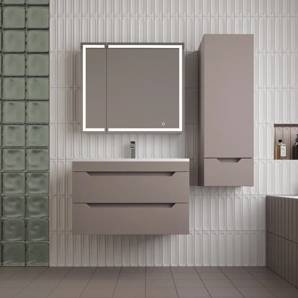 Тумба подвесная Style line "Остин" с раковиной Фортуна 2 ящ тауп темный эмаль PLUS