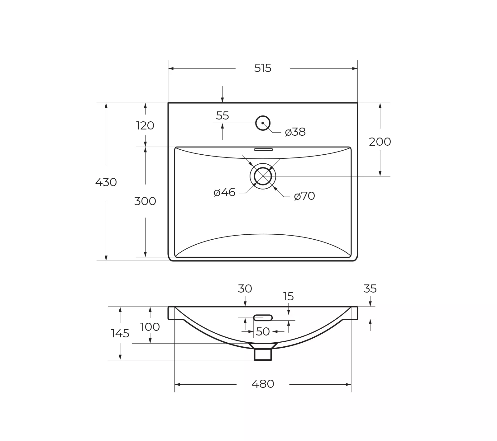 Керамическая раковина 510x430x145