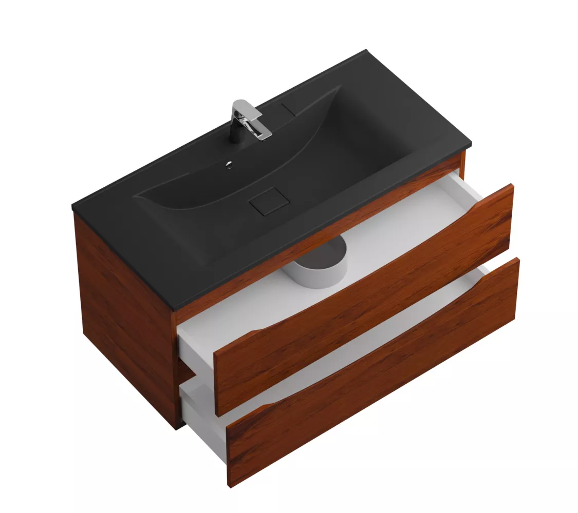 Тумба подвесная BelBagno MARINO Rovere Cillegio, раковина чёрная