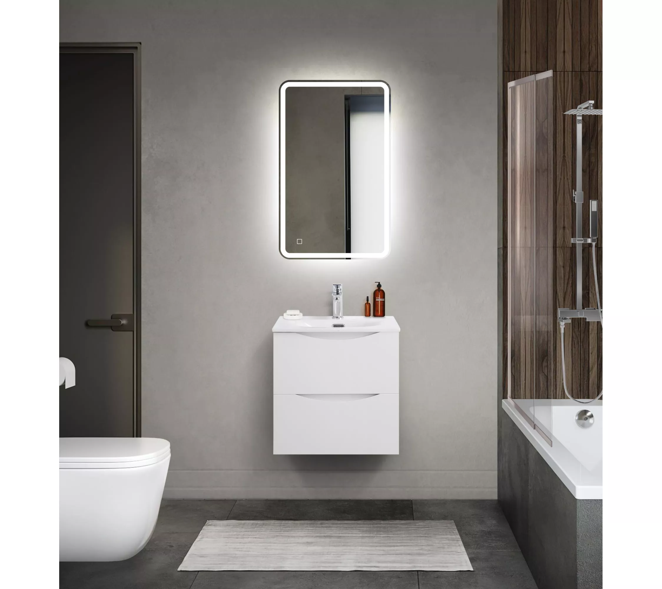 Тумба подвесная BelBagno MARINO Bianco Lucido, раковина чёрная/белая
