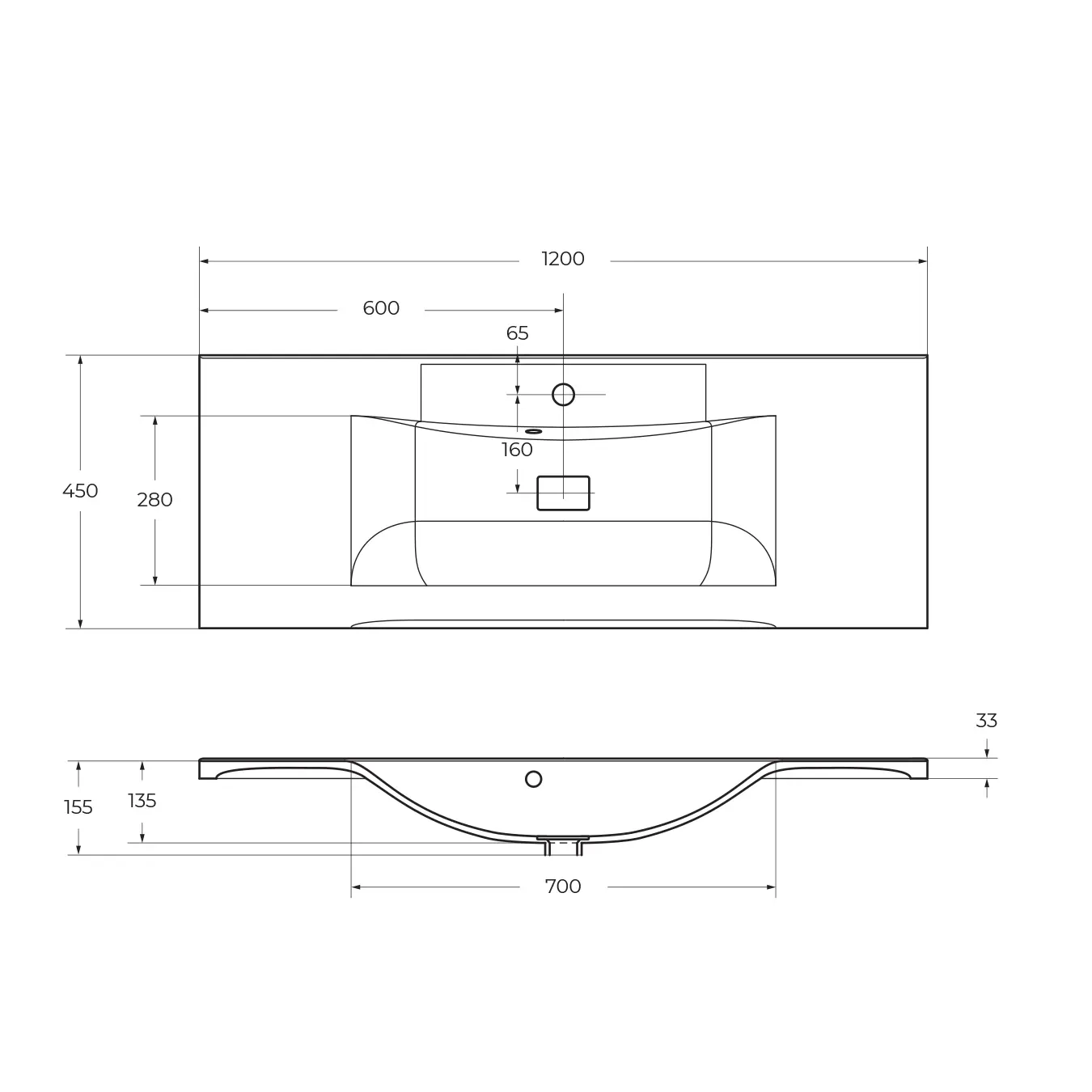 Раковина из литьевого мрамора, 1200x450x150