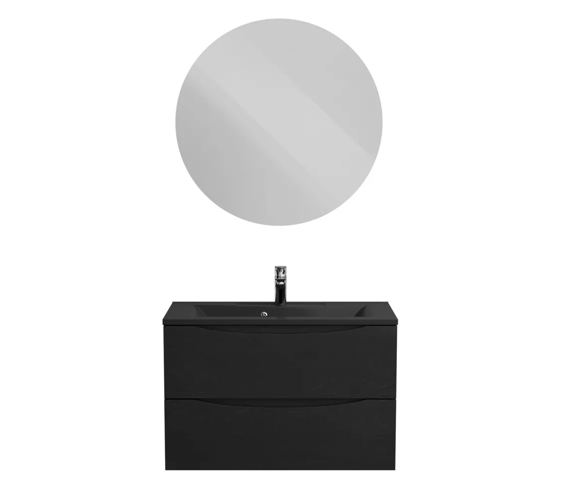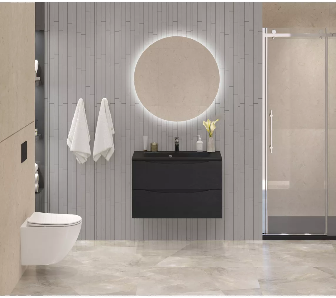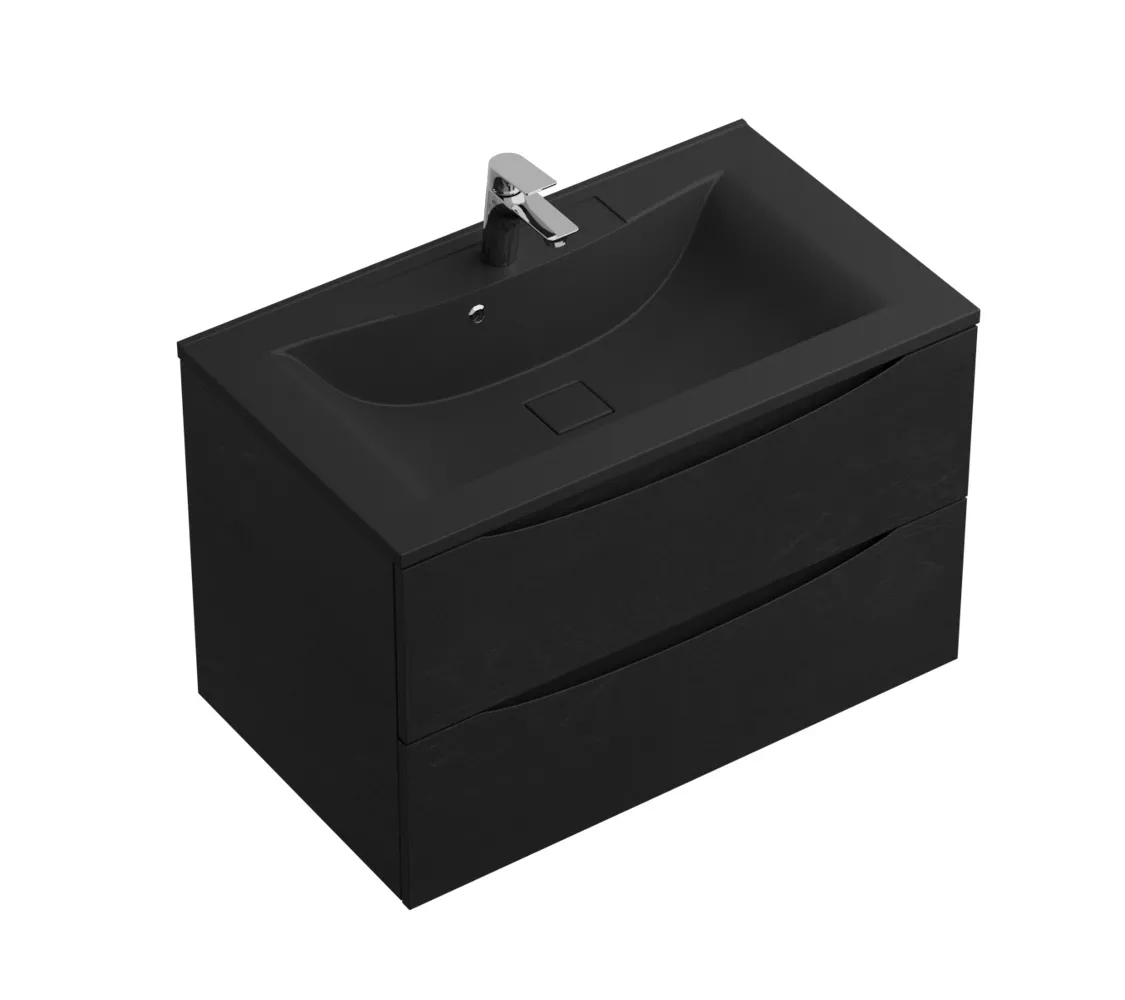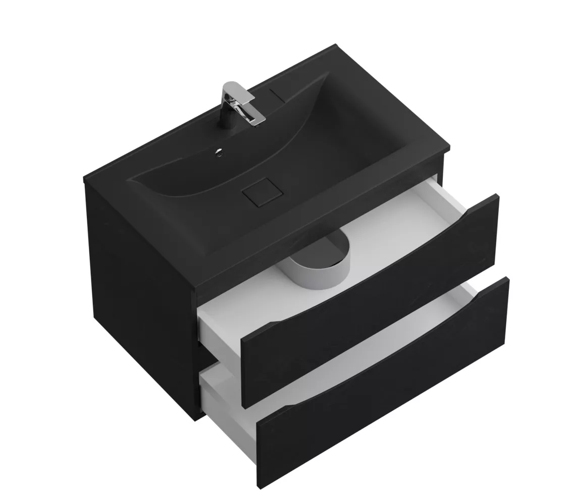 Тумба с раковиной подвесная BelBagno MARINO 80 Rovere Cioccolato Amaro, раковина чёрная