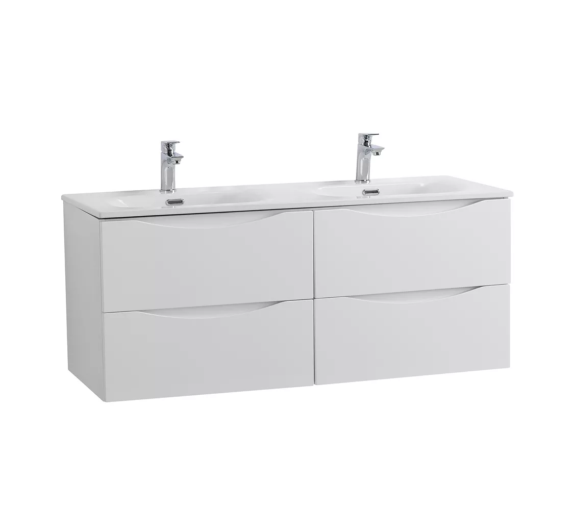 Тумба подвесная с раковиной 2 чаши, с 4 ящиками BelBagno MARINO-CER-N 120 Bianco Lucido