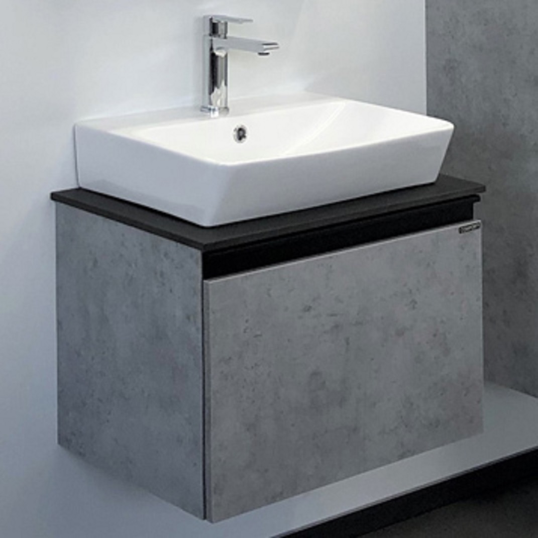 COMFORTY. Тумба-умывальник "Эдинбург" бетон светлый с черной столешницей, с раковиной COMFORTY