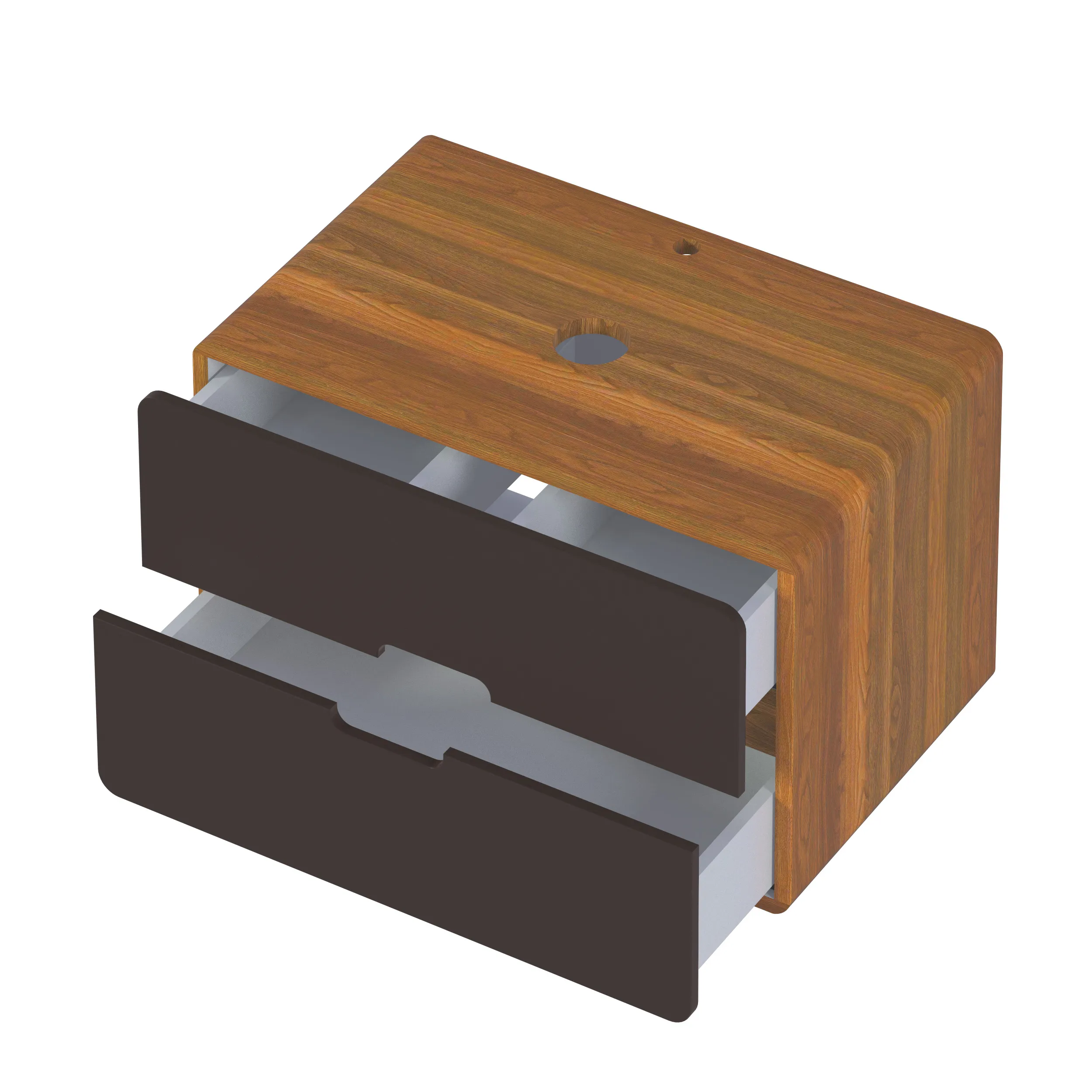 • Материал фасада и корпуса тумбы под дерево – МДФ, покрытый пленкой ПВХ, а ящики из влагостойкой ЛДСП. Благодаря этому модель сохранит первозданный вид в условиях повышенной влажности.