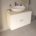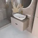 • Подвесной тип крепления облегчает уборку и визуально расширяет пространство. Интегрированные ручки становятся стильным дополнением тумбы.