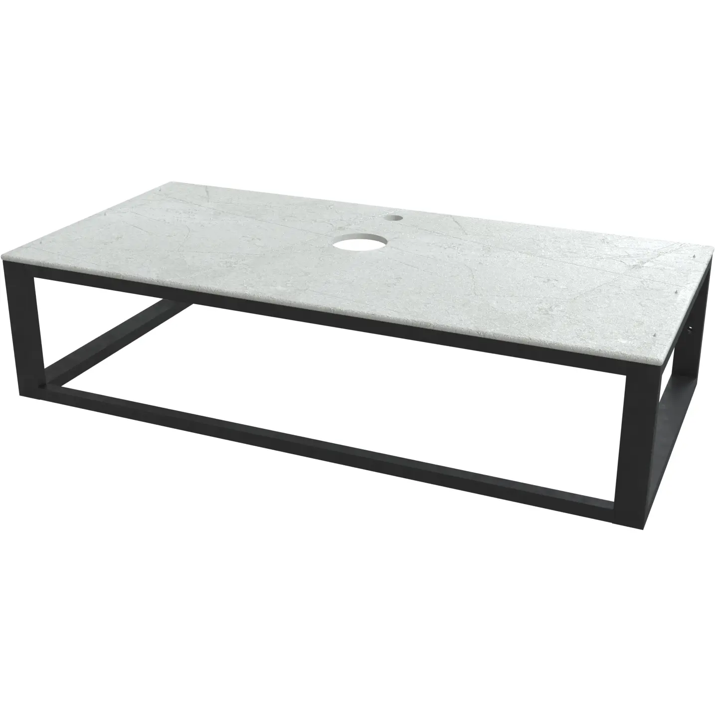 Столешница из керамогранита - дизайнерское решение выполненное в фактуре декоративной штукатурки, с эффектом каменной стены, прекрасно подойдет под разные виды отделочных материалов стен и напольных покрытий в ванной комнате. Натуральный оттенок серо-бежевого керамогранита отлично гармонирует с металлическим подстольем, который служит одновременно основанием и рейлингом для полотенец и халатов. Поверхность столешницы обладает ощутимой фактурой и напоминает благородный матовый бархат. Материал не впитывает влагу, препятствуют образованию плесени и грибка, ему не вредит жир, масло, краска. Керамогранит - экологически чистый материал, не выделяющий токсины и другие опасные вещества в окружающую среду.