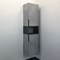 Подвесная шкаф колонна с двумя створками и пространством для открытого хранения. Створки оснащены петлями с плавным закрыванием и черными матовыми алюминиевыми ручками. Фасады из влагостойкого ЛДСП Дуб шоколадно-коричневый. Корпус из влагостойкого ЛДСП дуб шоколадно-коричневый и черный матовый. За створками по две регулируемые по высоте полки. Шкаф-колонна универсальна, может быть подвешена переворачиванием в правом и левом варианте.