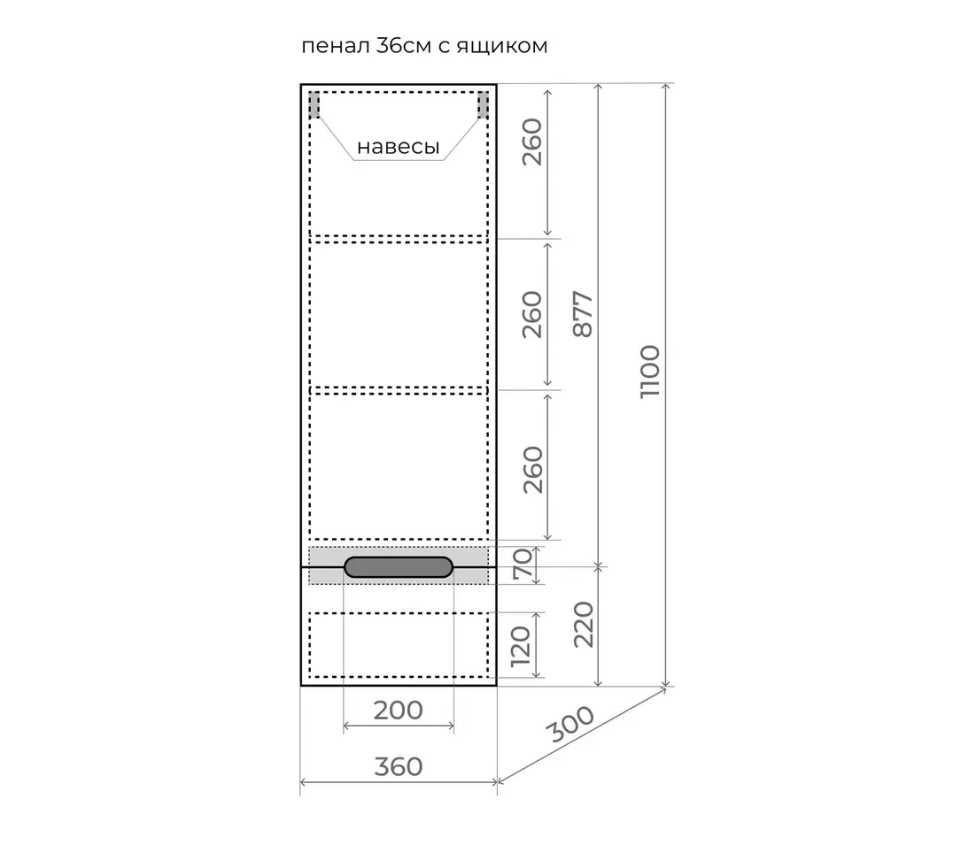 Колонна подвесная "Матис" 36 см, 1 ящик, Белый матовый, PLUS, ЭМАЛЬ