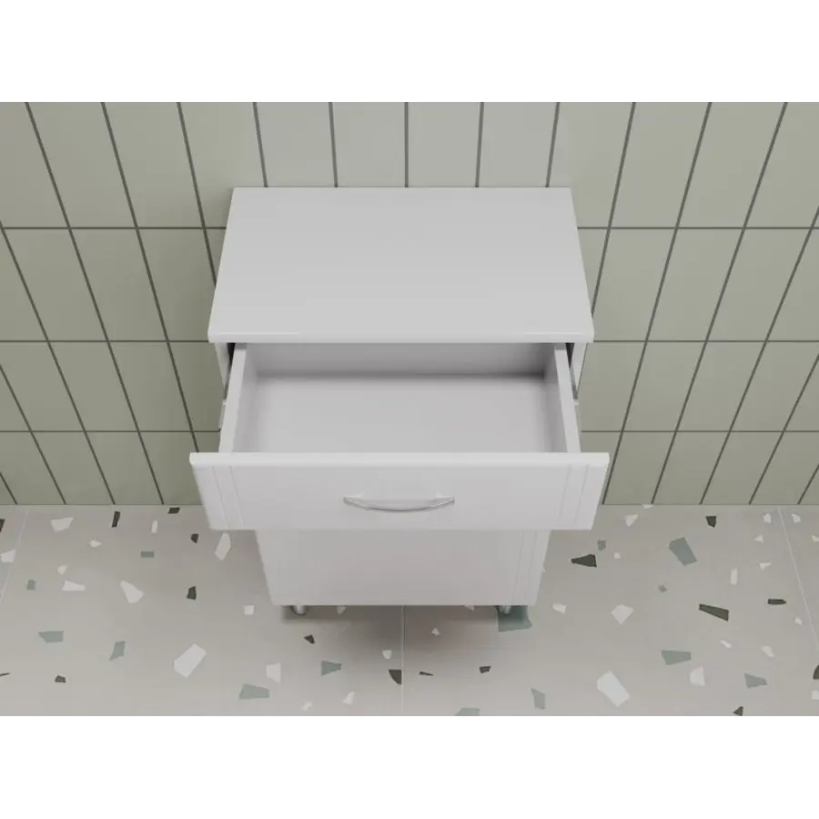 Комод с корзиной Style Line Эко Стандарт ТН 50 белый — это компактный и функциональный модуль для размещения белья и необходимых предметов. Прямоугольная конструкция с верхним выдвижным ящиком и откидным фасадом со встроенной бельевой корзиной имеет ширину всего 50 см. и глубину 30 см. Изделие изготовлено из современных влагостойких материалов ЛДСП и МДФ, покрытого плёнкой.