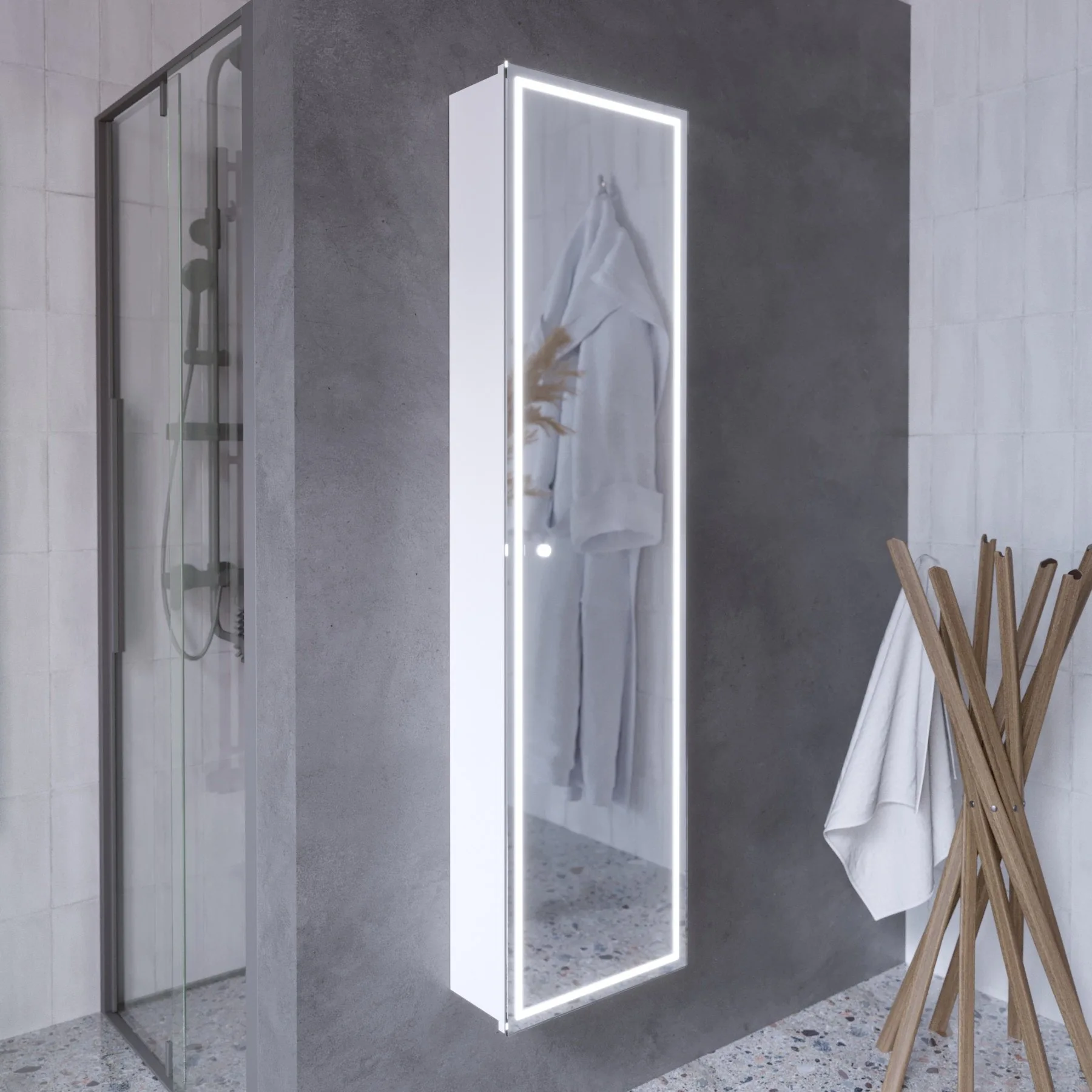 Подвесной зеркальный пенал с подсветкой – стильное функциональное решение для интерьера. Pillar гармонично впишется в современный дизайн. Зеркальная поверхность визуально расширяет пространство, делая даже небольшую ванную комнату более просторной и светлой.