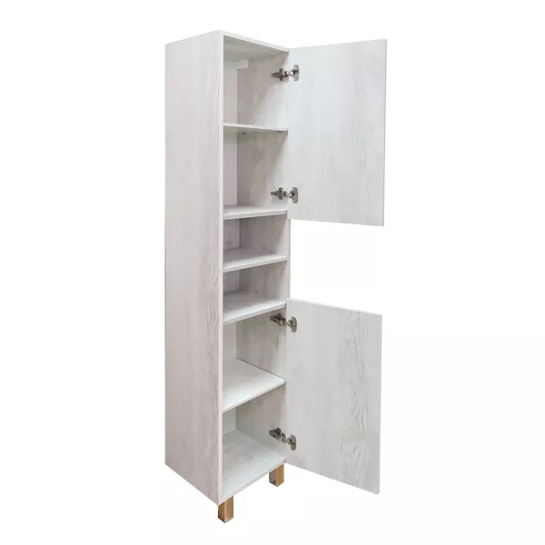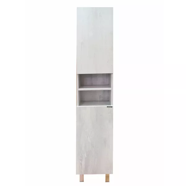 Напольная шкаф-колонна отличное решение для хранения разных предметов необходимых в ванной комнате. За дверцами по одной горизонтальной полке. Петли створок можно установить как справа, так и слева