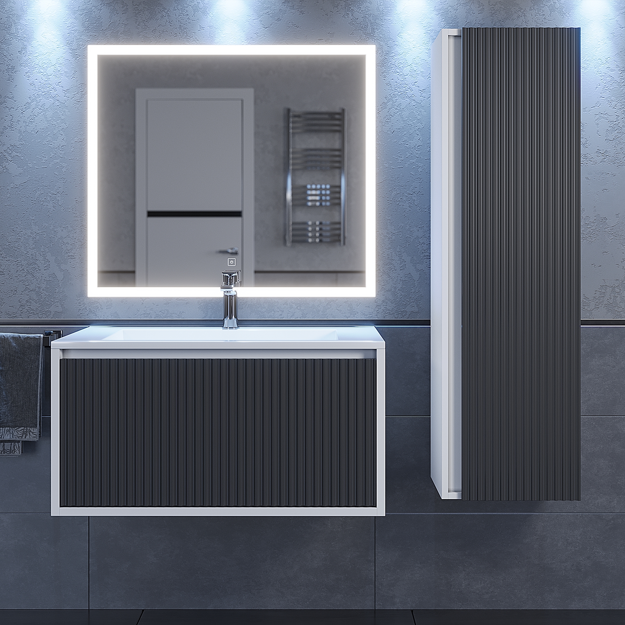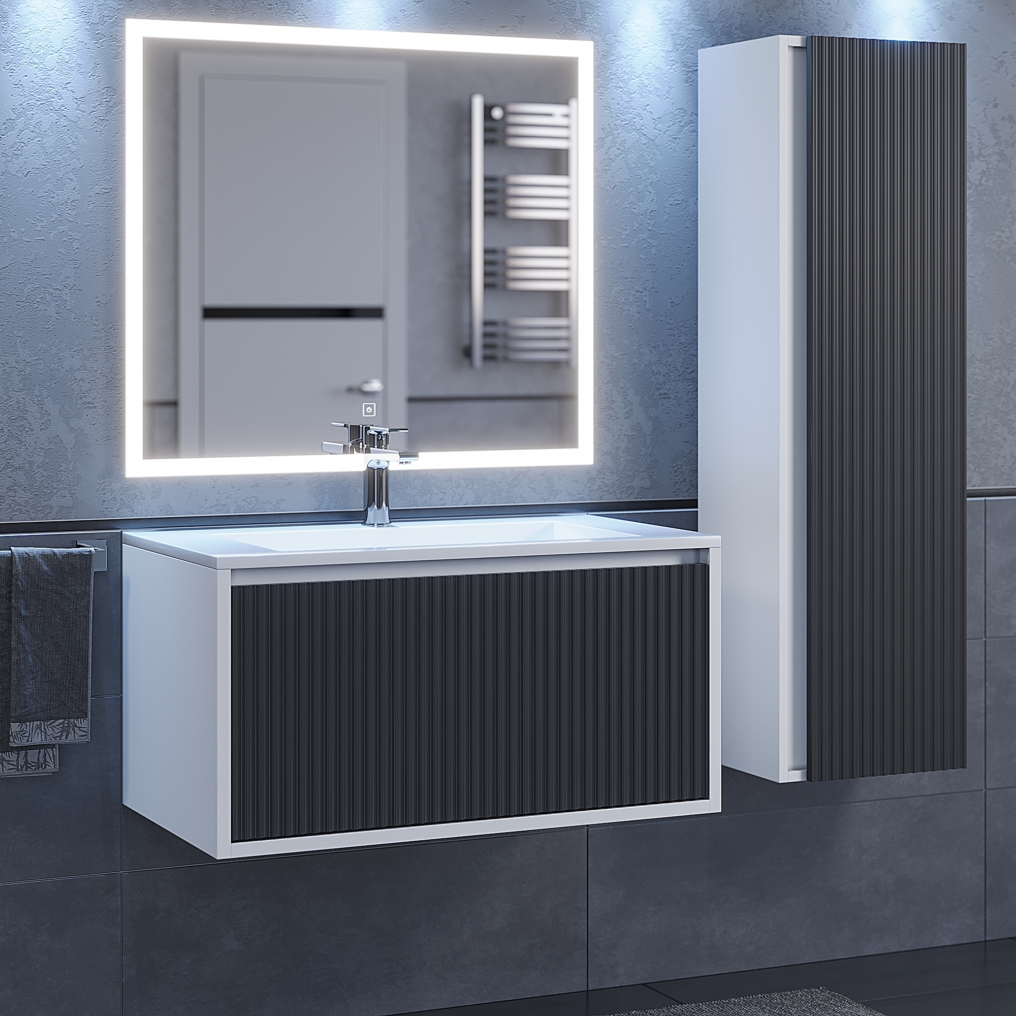 Настенный шкаф-пенал для ванной комнаты из коллекции Next Premium отлично дополнит подвесные тумбы с раковинами Uperwood Next Premium в черном или белом цвете.
