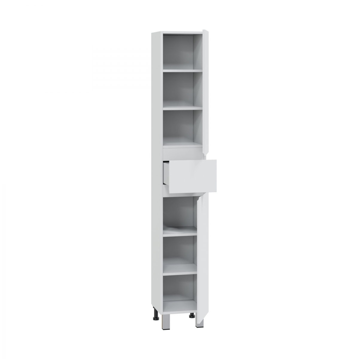 Шкаф-пенал для ванны 30 см укомплектован съемными полочками из ДСП, двумя хромированными ножками и двумя пластиковыми. Петли у колонны с плавным закрыванием. Выдвижной ящик укомплектован шариковыми направляющими полного выдвижения ( не плавного закрывания). Купить шкаф-пенал для ванны вы можете оставив заказ на нашем сайте. Шкаф-колонну вы можете приобрести в дополнение к тумбам из коллекции Санта МАРС.