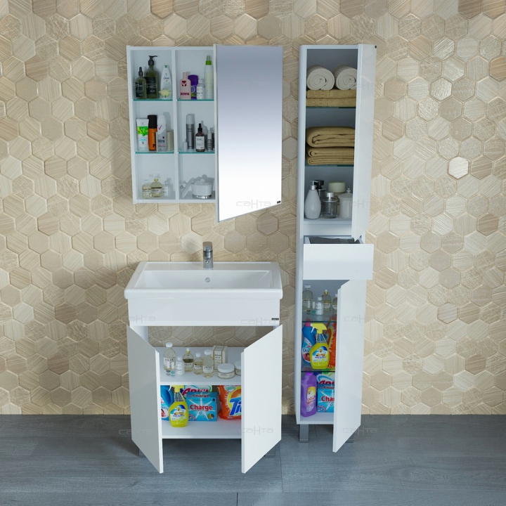 Шкаф-пенал для ванной СаНта Марс 30 напольный. Фасады шкаф-пенала для ванной комнаты изготовлены из МДФ, корпус колонны из влагостойкого ЛДСП. Корпус и фасад шкаф-пенала для ванной комнаты покрыты эмалью.