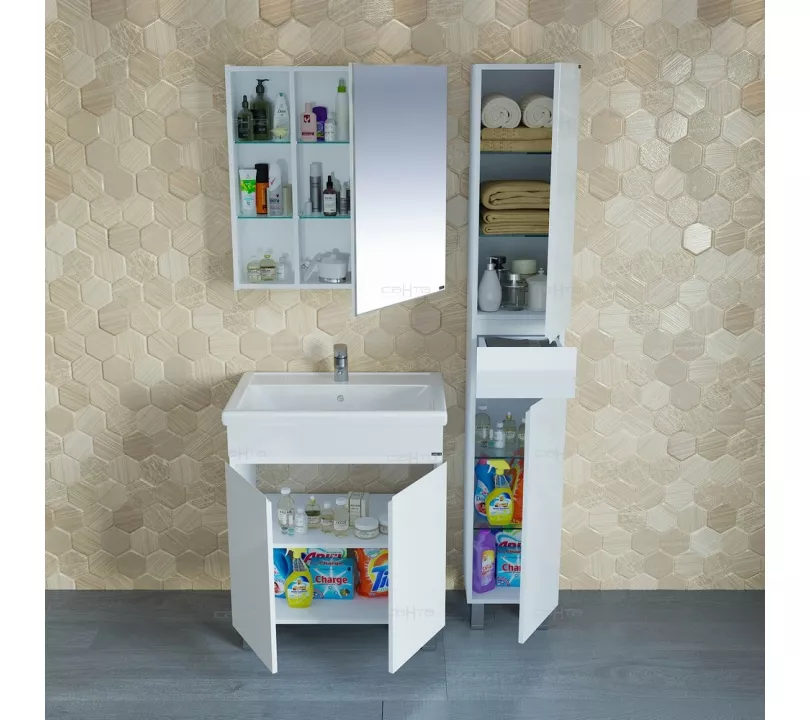 Комплектация: ящик полного выдвижения - 1 шт., на дверках петли плавного закрывания, ножки хром - 2 шт., ножки пластик - 2 шт.Шкаф-пенал для ванной СаНта Марс 30 напольный. Фасады шкаф-пенала для ванной комнаты изготовлены из МДФ, корпус колонны из влагостойкого ЛДСП. Корпус и фасад шкаф-пенала для ванной комнаты покрыты эмалью.