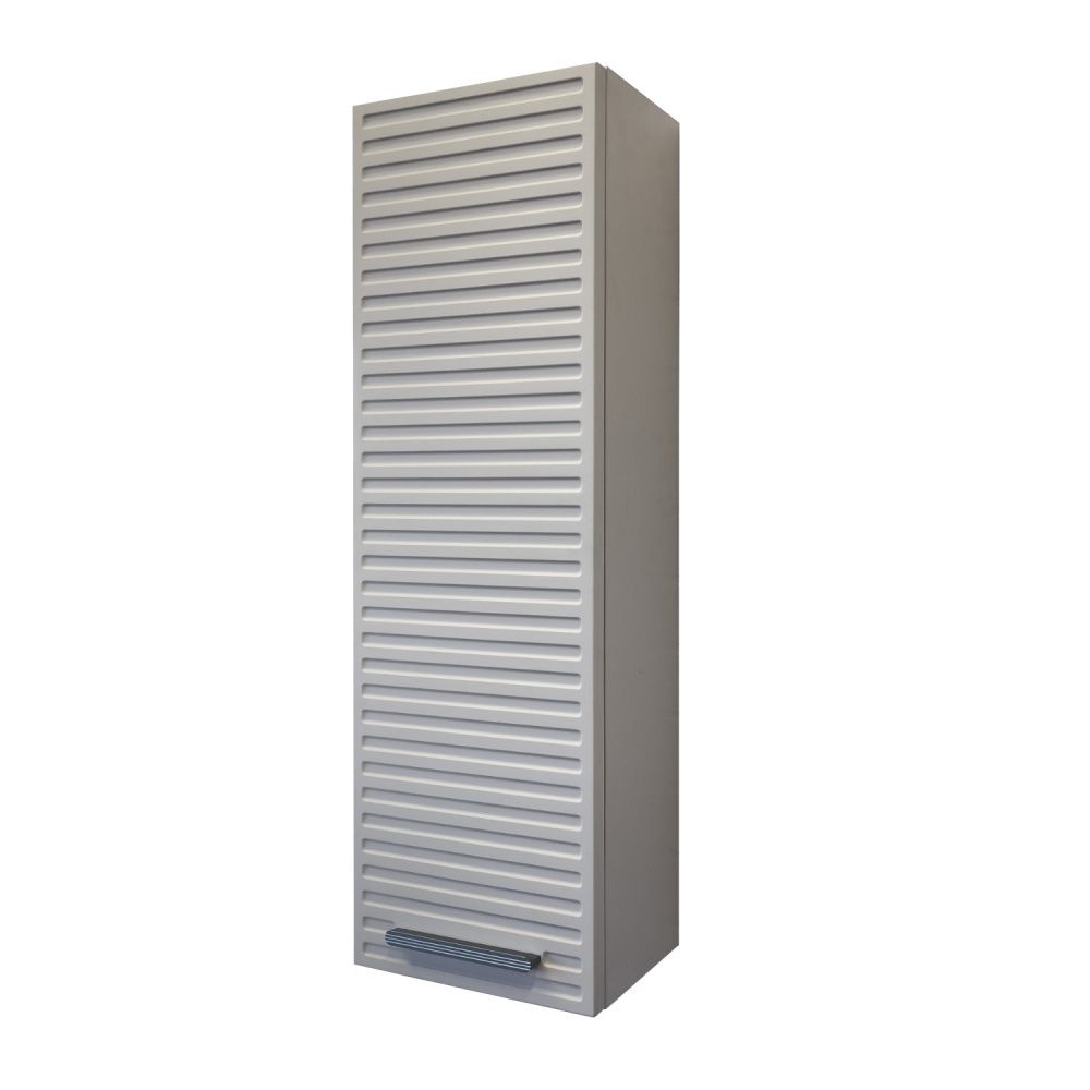 Материал корпуса: влагостойкое ЛДСП Материал фасада: МДФ в плёнке серый шёлк Габариты (ШхВхГ): 250*800*180 мм Створка оснащена петлями с плавным закрыванием. За створкой две горизонтальные полки. Фасад тумбы из МДФ фрезерован горизонтальным узором и обтянут в пленку цвета "серый шёлк". В комбинации с зеркалом Эдельвейс шкаф можно подвесить в правом варианте.