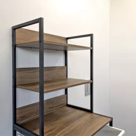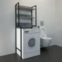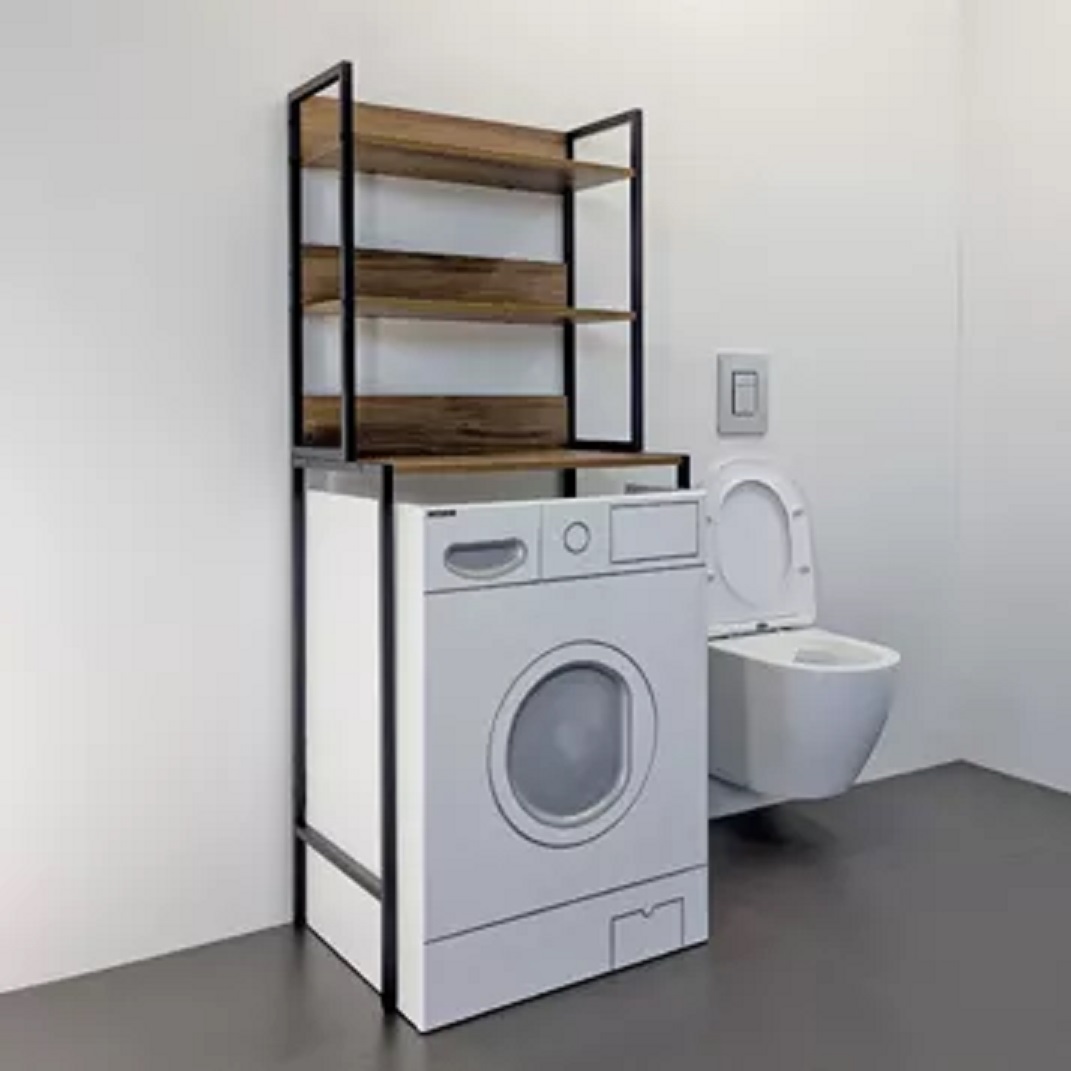 Напольный стеллаж изготовлен из стального профиля, покрытого черной матовой эмалью, полки из ЛДСП цвета дуб темно-коричневый. Стеллаж для установки над стиральной машиной. Название: Стеллаж напольный Артикул: 00-00011201CF Варианты цвета: дуб темно-коричневый Материал: влагостойкое ЛДСП, черный металл Габариты ШхВхГ: 650*1600*465 мм Напольный стеллаж над стиральной машиной дает возможность обеспечить много места для компактного хранения косметических и гигиенических средств, а также украсить интерьер ванной комнаты. Стеллаж поставляется в разобранном виде. Схема сборки стеллажа