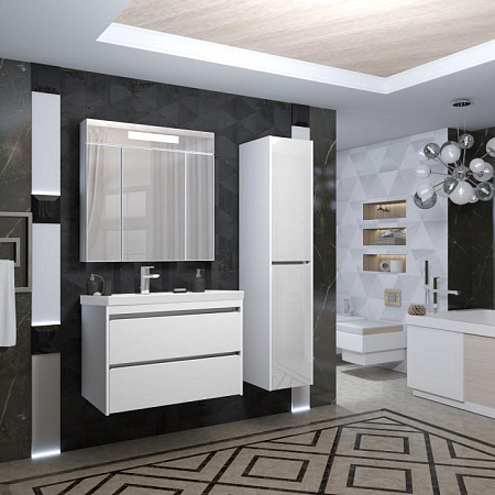 Стильная коллекция Фреш сдержанна и лаконична. Отличительной особенностью коллекции, является удобный зеркальный шкаф, состоящий из трех или двух створок, дающих возможность грамотно использовать пространство ванной комнаты. В шкафчике имеется встроенная горизонтальная подсветка.