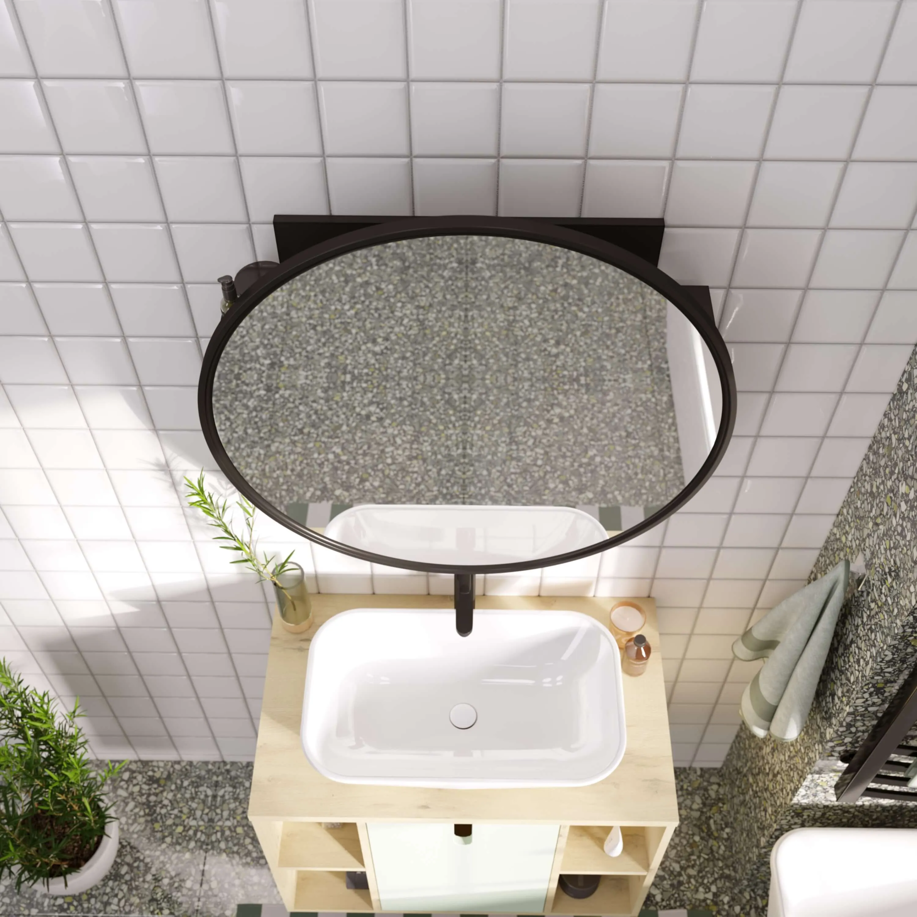 Круглое зеркало легко вписывается в различные стили интерьера — от классического до современного. Зеркало можно установить не только в ванной, но и в других комнатах.