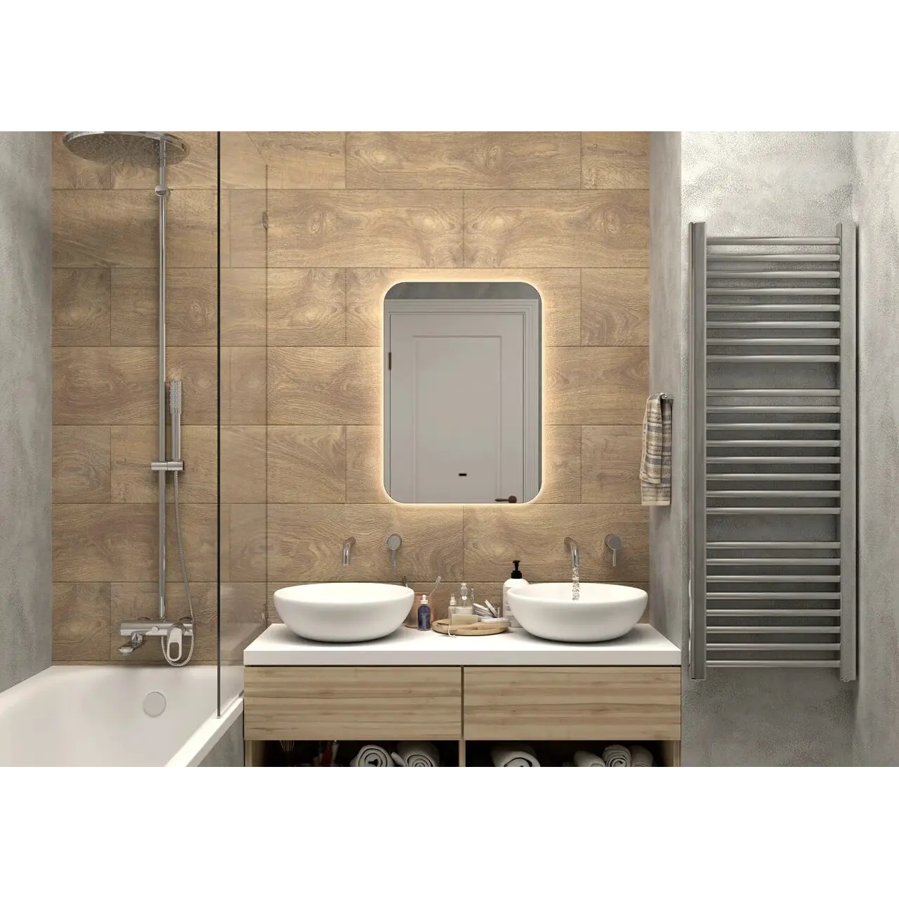 • LCD часы с подогревом + диммер (только в размерах 800x700, 1000x700, 1200x700)