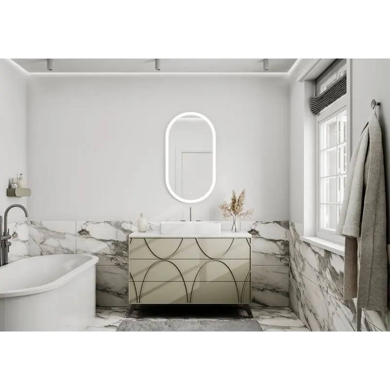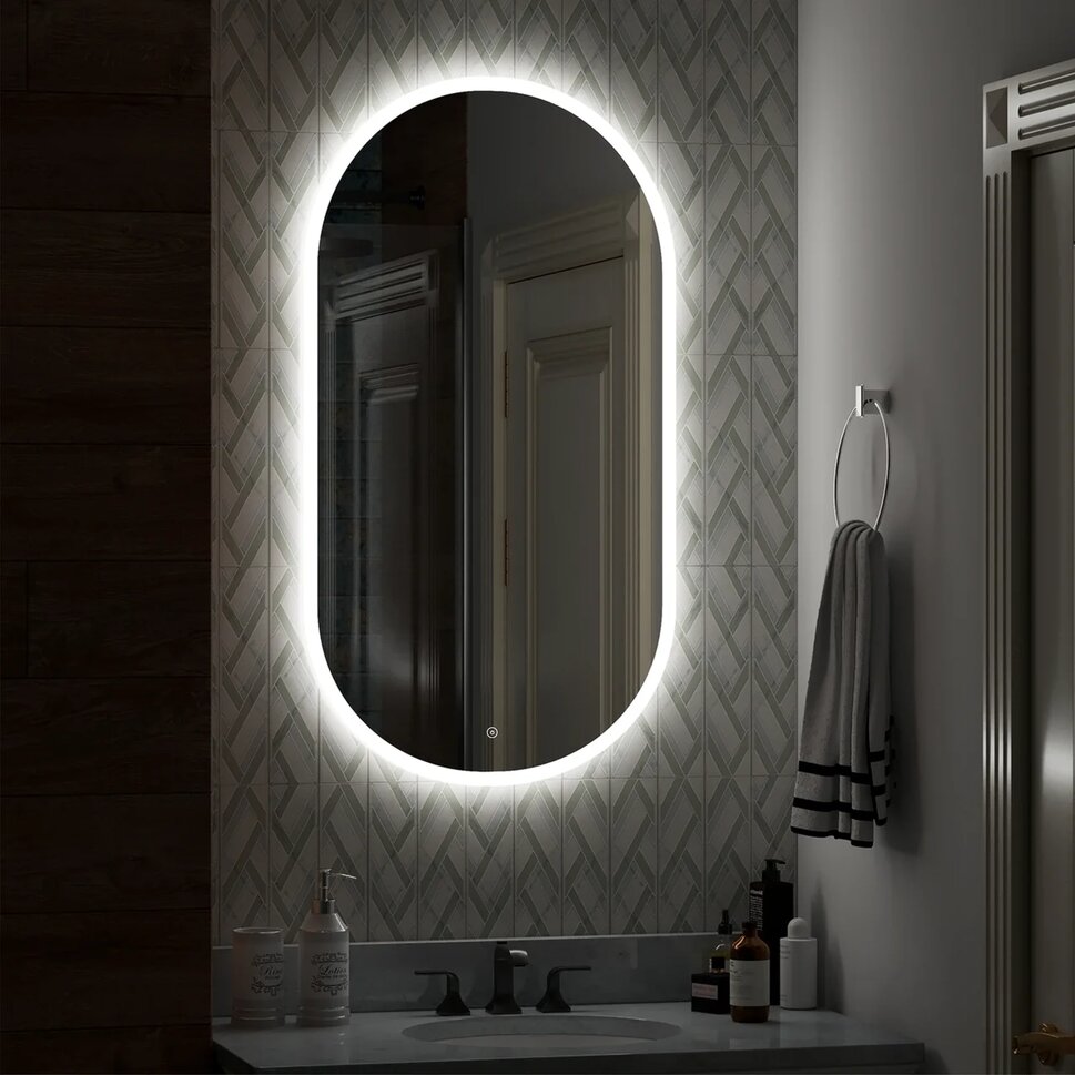 "Delight Led" 550х1000 - это овальное зеркало для ванной шириной 55 см, высотой 100 см.