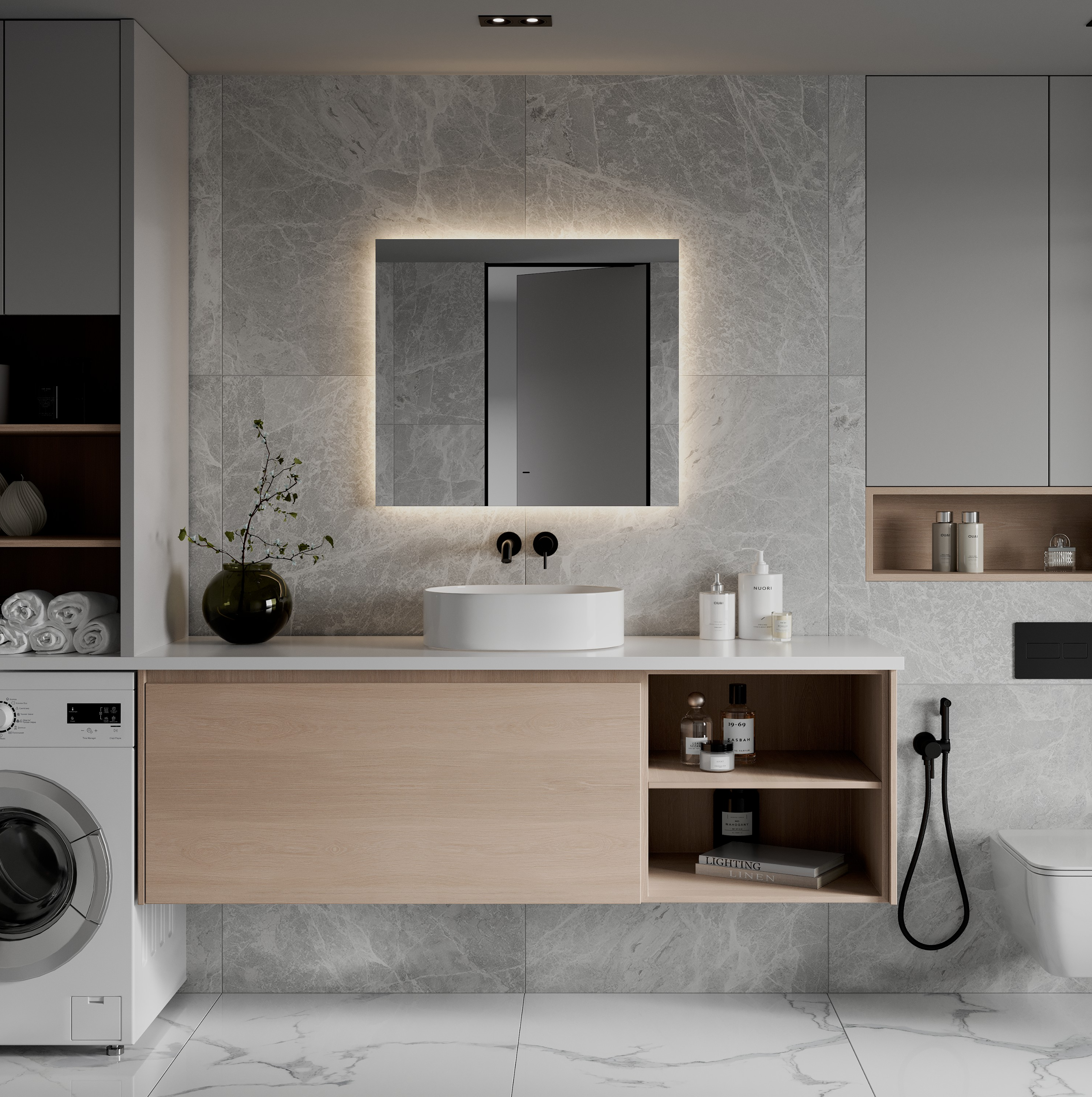 Зеркало "Trezhe" с бесконтактным сенсором — это воплощение современного дизайна и утонченного стиля. Его универсальная форма с острыми четкими краями придаёт изделию характер, способствуя гармоничному сочетанию с любым интерьером. Корпус выполнен из МДФ рамки, а открытая ореольная подсветка создает эффект парящего зеркала. Включение подсветки осуществляется простым движением руки на расстоянии до 5 см от бесконтактного сенсора, что делает использование зеркала максимально удобным. Это зеркало не только стильное, но и функциональное дополнение, которое привнесет уникальность в ваше пространство. Оно подчеркивает красоту интерьера, создавая атмосферу уюта, а качественное освещение делает повседневные процедуры более приятными и легкими