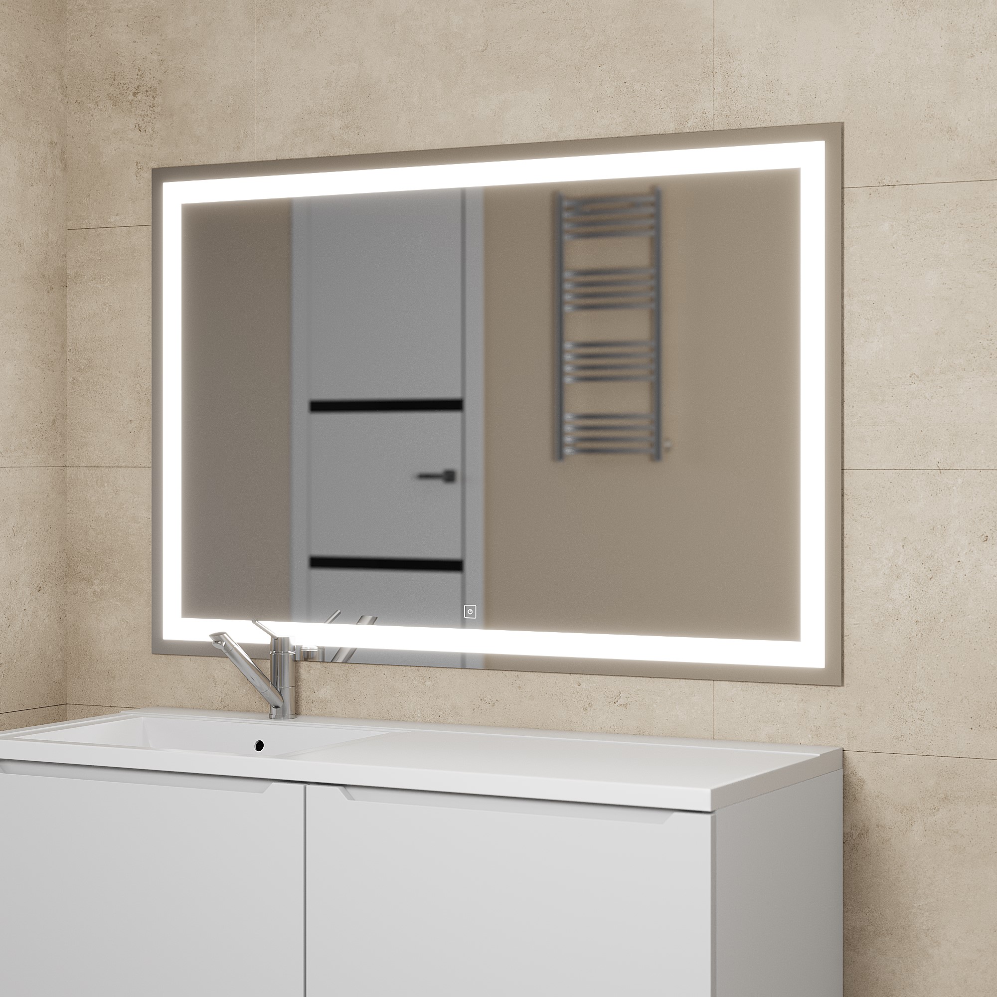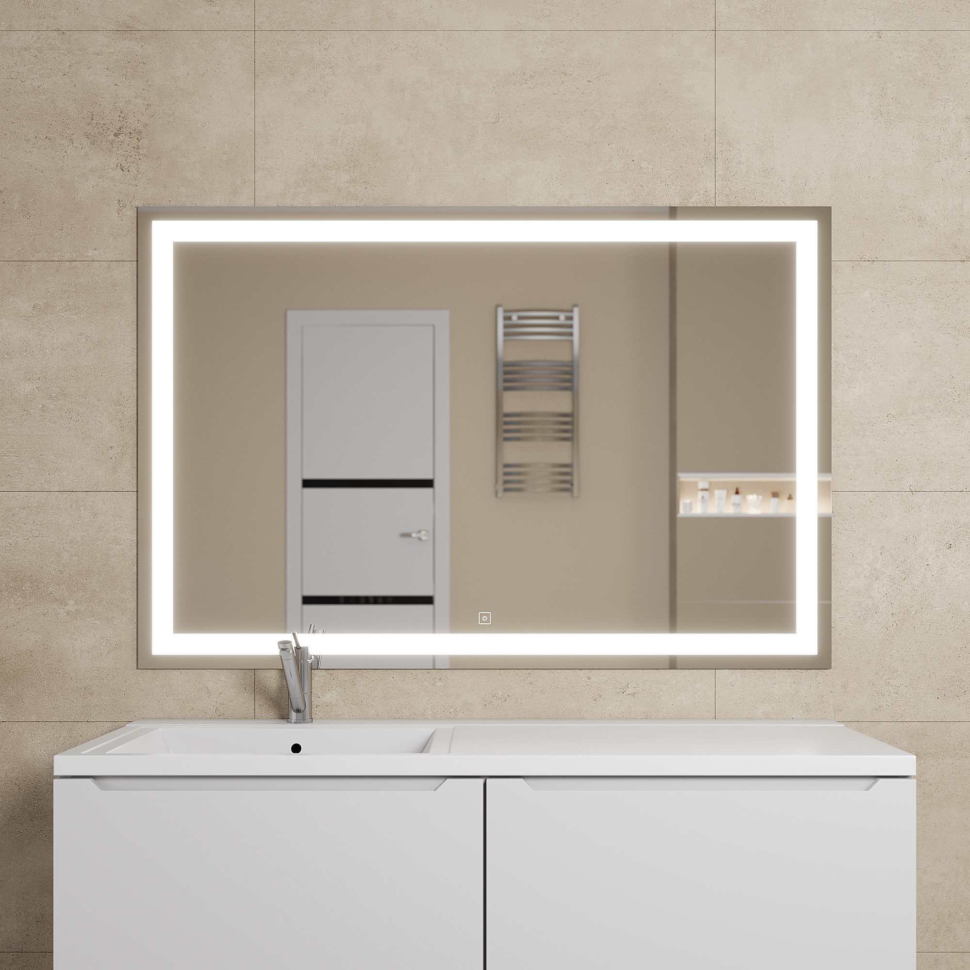 Модель оснащена встроенной LED-подсветкой, сенсорным выключателем с диммером, который позволяет включить и отрегулировать яркость подсветки в одно касание.Размерный ряд зеркал представлен моделями шириной от 60 до 120 см.