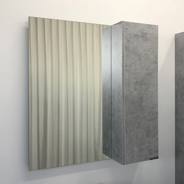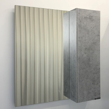 Высококачественное зеркальное полотно с амальгамой на основе серебра. Створка оснащена петлями с плавным закрыванием. Петли у створки снаружи. За зеркальной створкой две горизонтальные полки, в пространстве открытого хранения - одна. Зеркало-шкаф универсально - может быть подвешено в правом и левом варианте.
