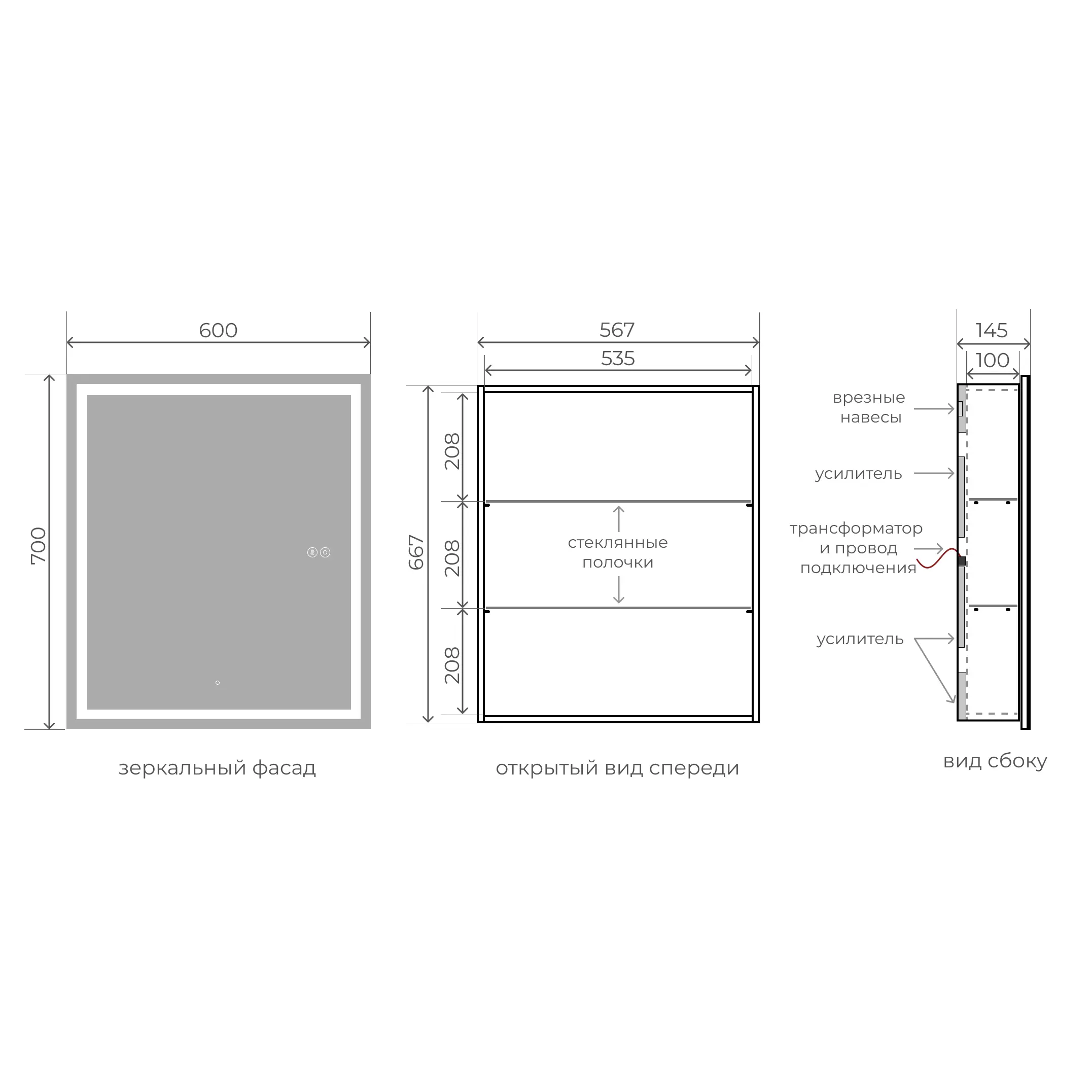 Закаленное стекло обеспечивает безопасность и долговечность, а встроенная подсветка создает комфортное освещение для утренних и вечерних ритуалов.