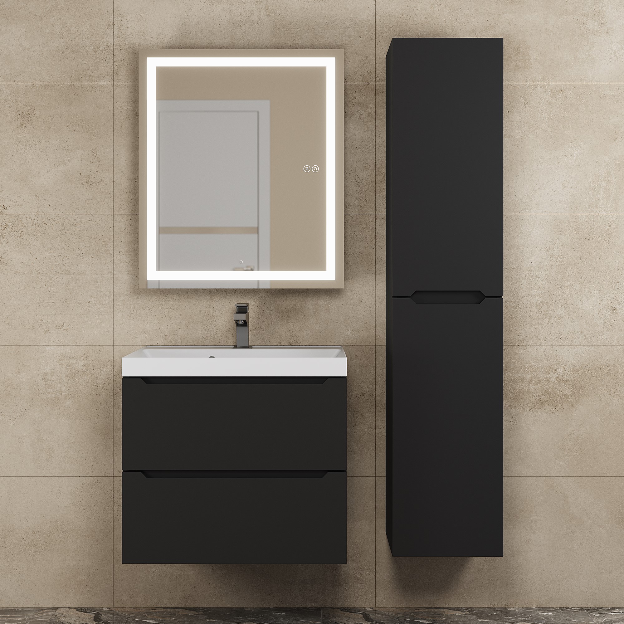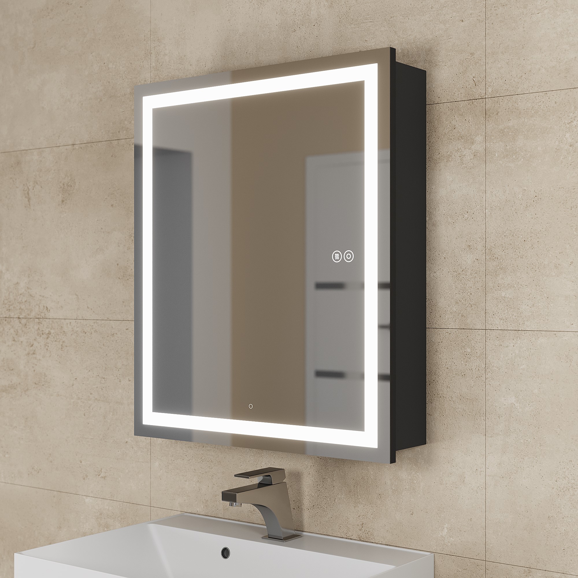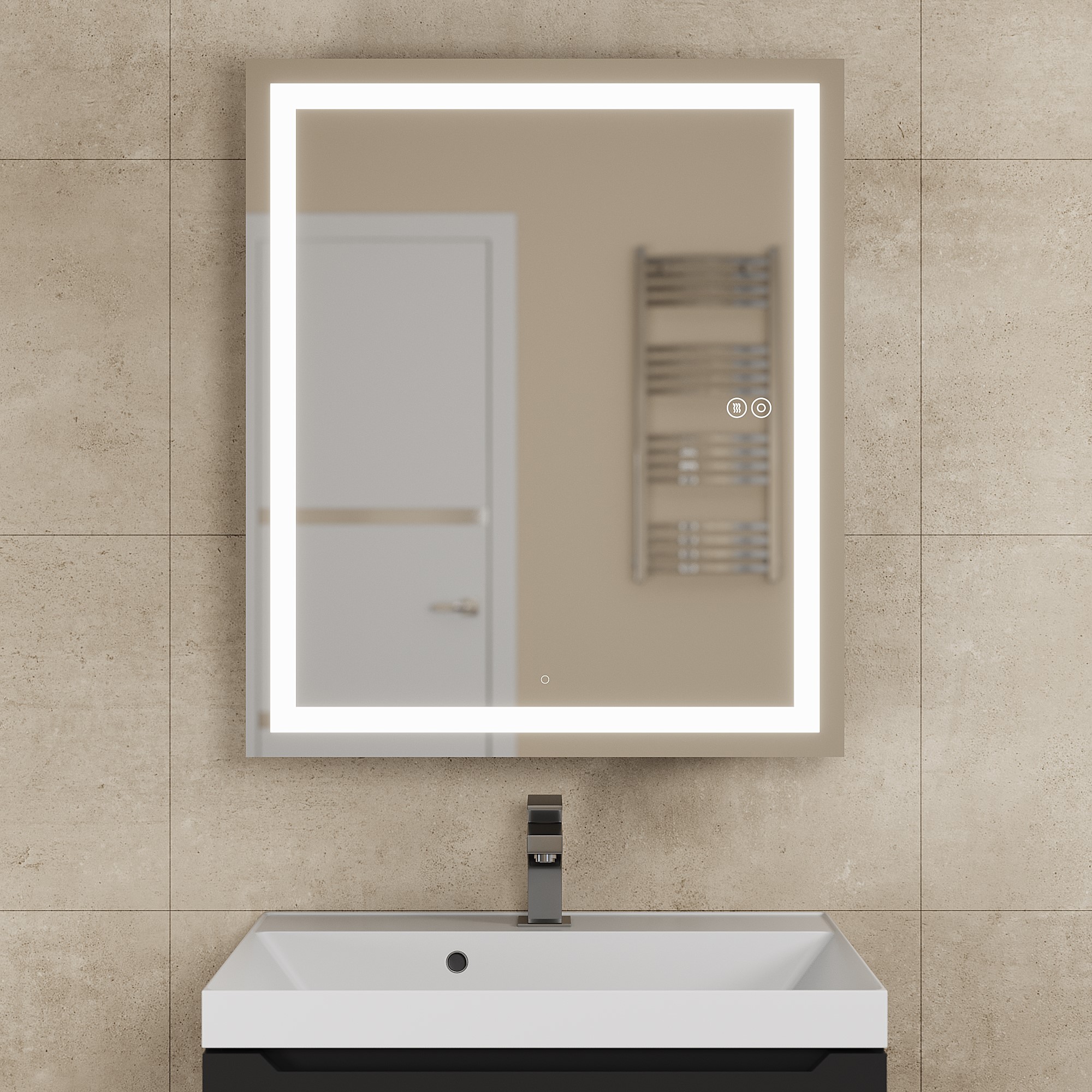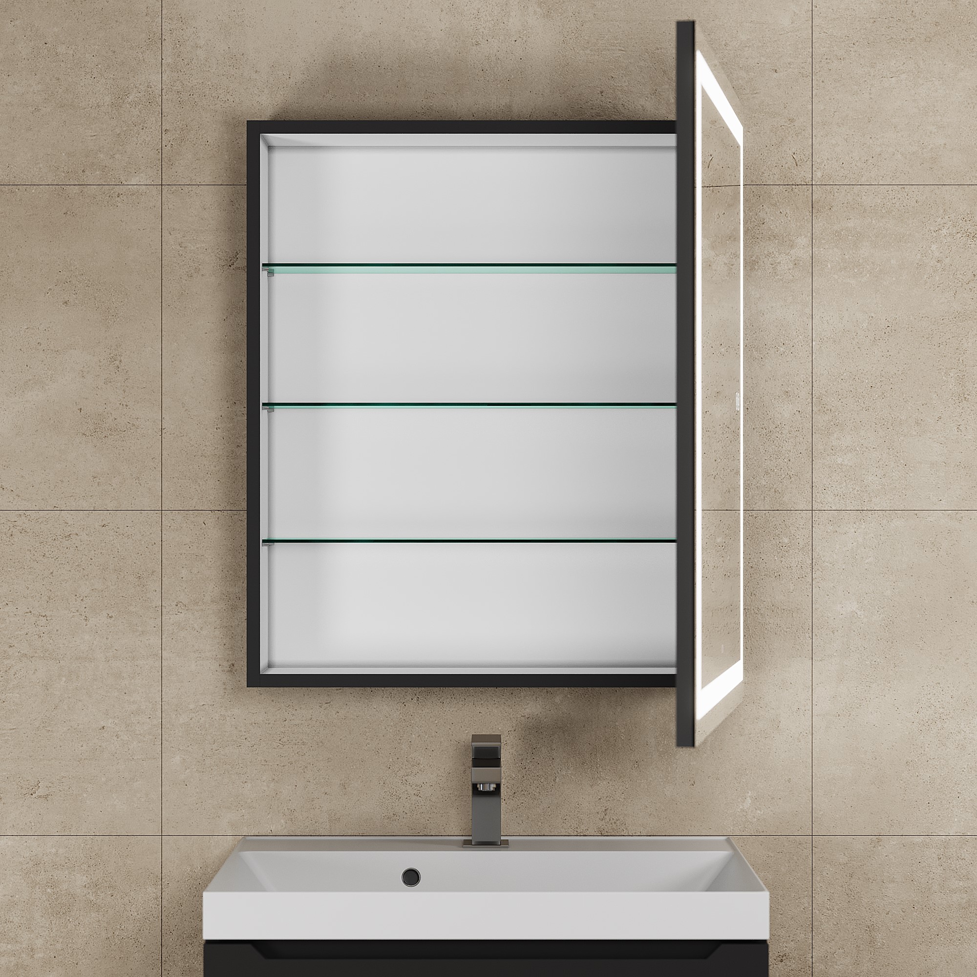 Закаленное стекло обеспечивает безопасность и долговечность, а встроенная подсветка создает комфортное освещение для утренних и вечерних ритуалов.