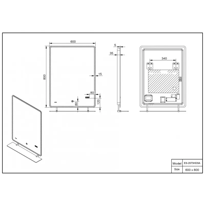 ЗЕРКАЛО ESBANO ES-2073 HDSA. Размер: 60x80x5 (с полочкой). Алюминиевый корпусисточник света: светодиоды (LED) IP24. Подогрев зеркального полотна. Часы.сенсорный выключателькомплект крепежа