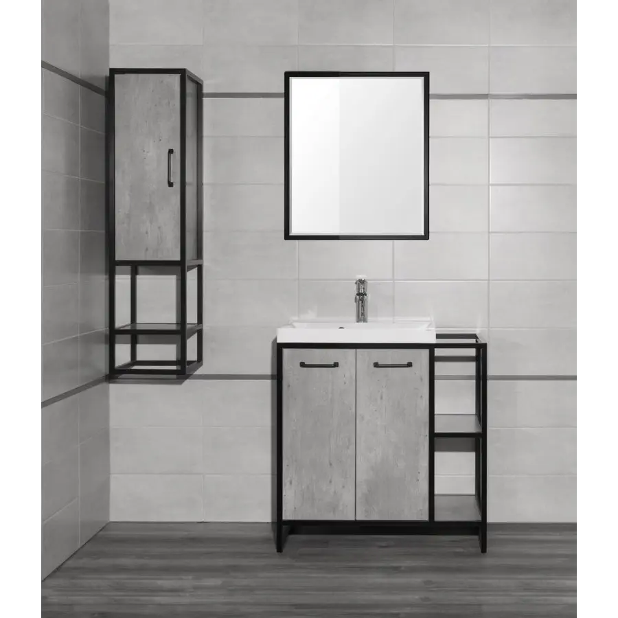 Коллекция мебели для ванной комнаты Style Line ЛОФТ выполнена в лучших традициях этого популярного сегодня направления - прочный металлический каркас тумбочек покрыт черной матовой краской и прекрасно сочетается с фасадами в цвете бетон, массивные ручки создают ощущение надежности и монументальности, тумба комплектуется глубокой раковиной из искусственного камня.