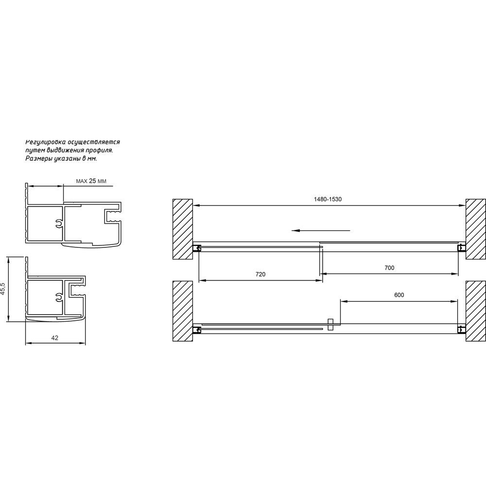 Душевая дверь в нишу Vegas Glass ZP NOVO 150 07 01 150 см, профиль матовый хром, стекло прозрачное