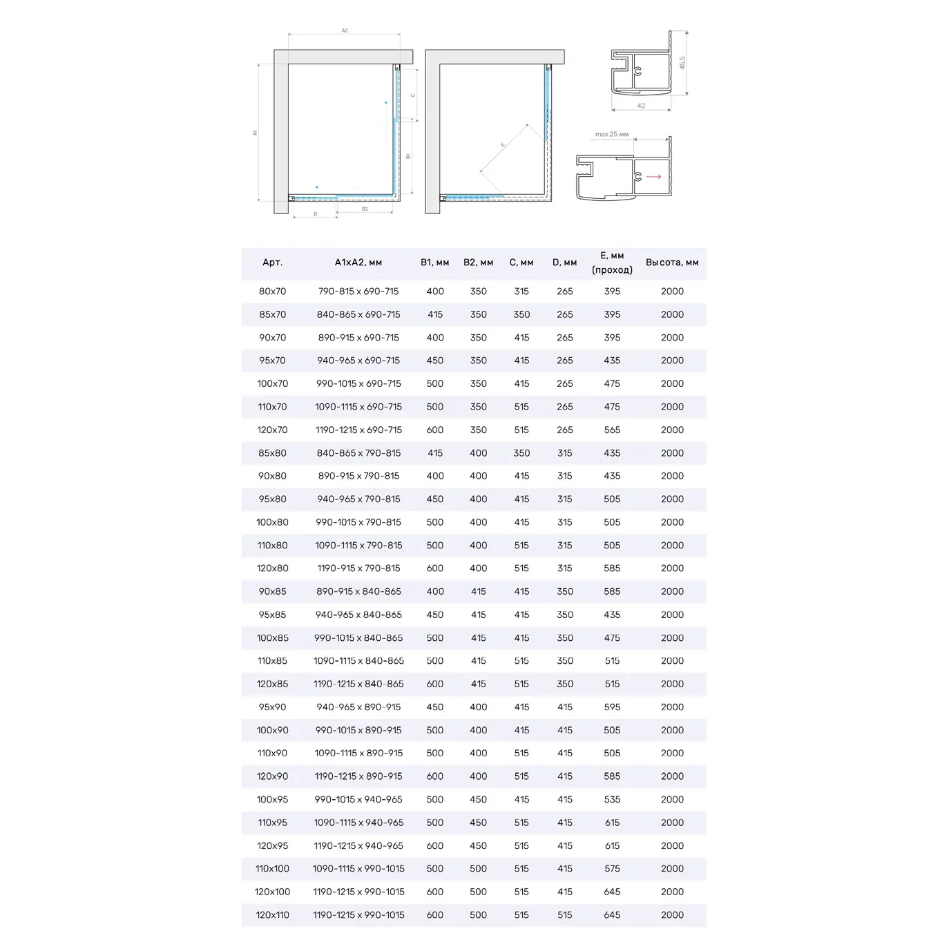 Душевой уголок Vegas Glass ZA-F Tur Novo 100*80 05 01 профиль бронза, стекло прозрачное