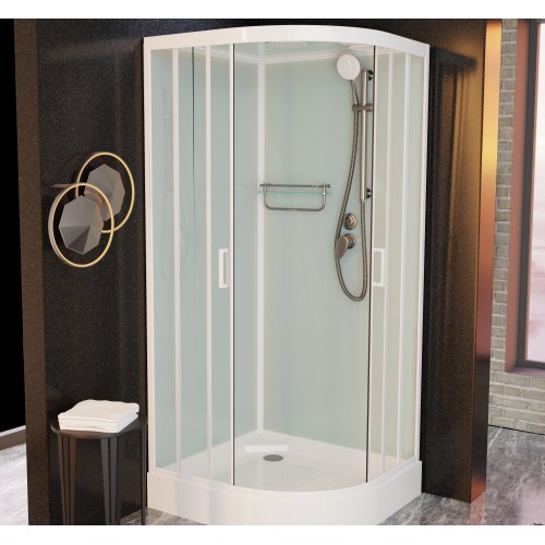 Это безсиликоновая сборка, резьбовые соединения на смесителе и душе, двойные ролики с повышенной износостойкостью , металлические магниты на дверях, стеклянная крыша. Неповторимые душевые кабины Frank с качественной фурнитурой способны сильно подчеркнуть стиль ванной комнаты.