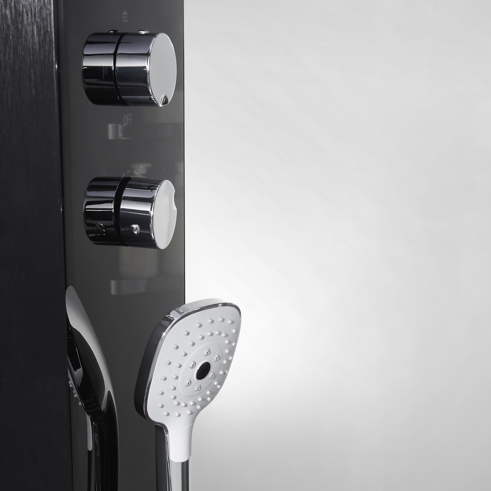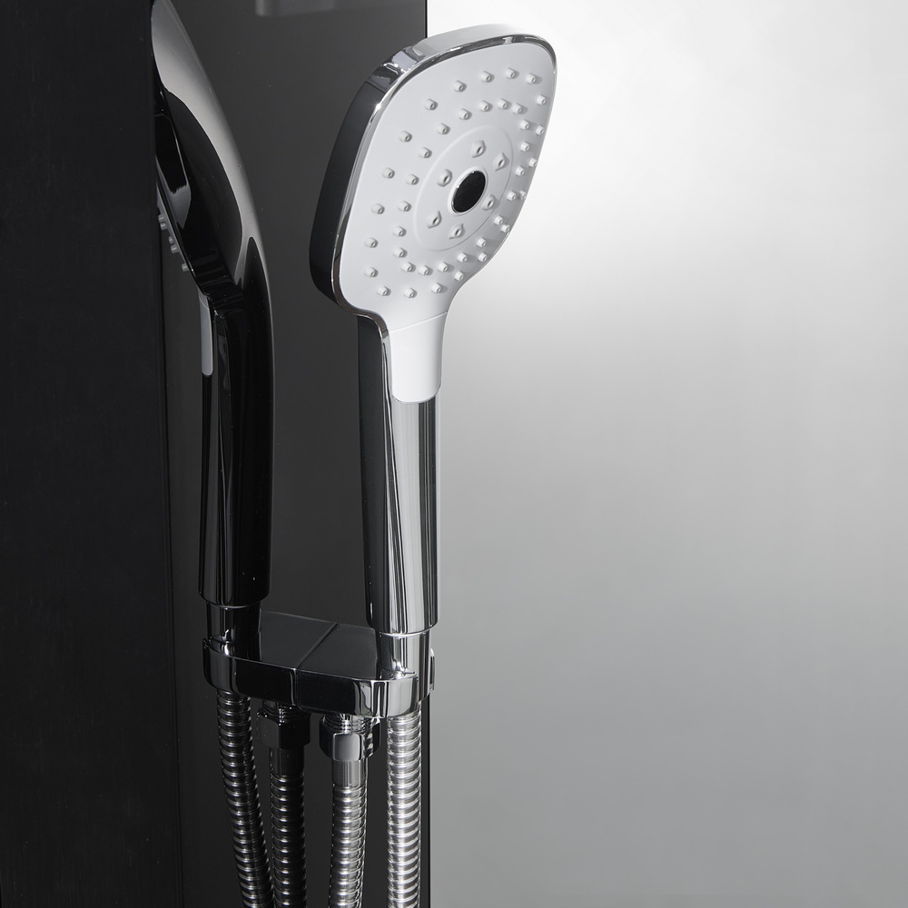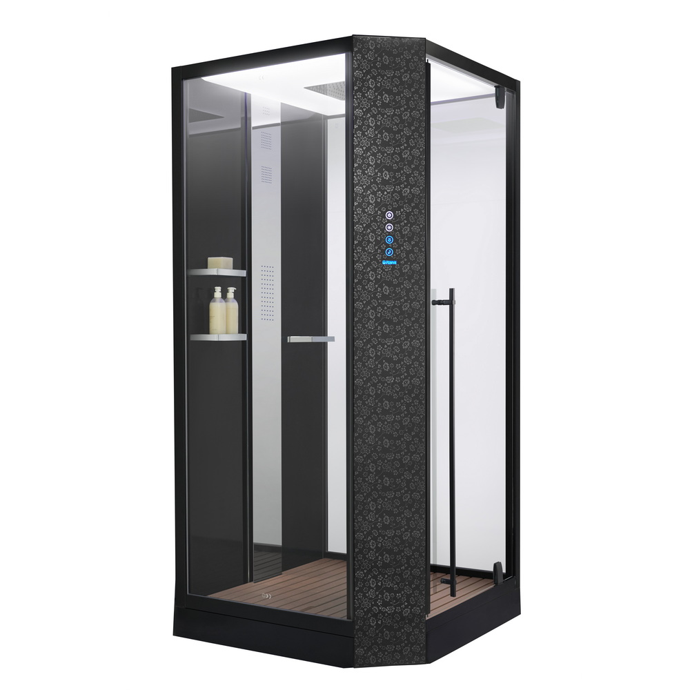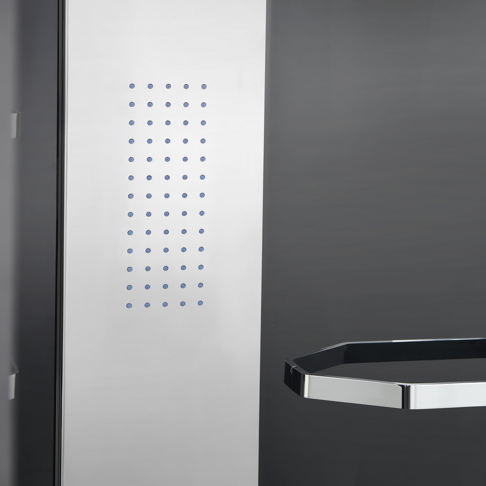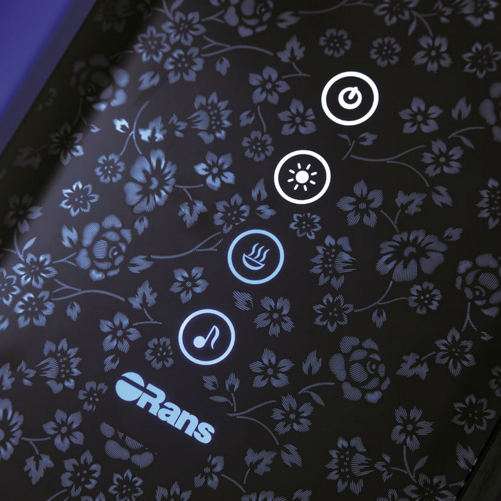 • Внешняя, электронная панель управления: включение душевой кабины, радио FM, полноформатная LED подсветка потолка, паровая сауна