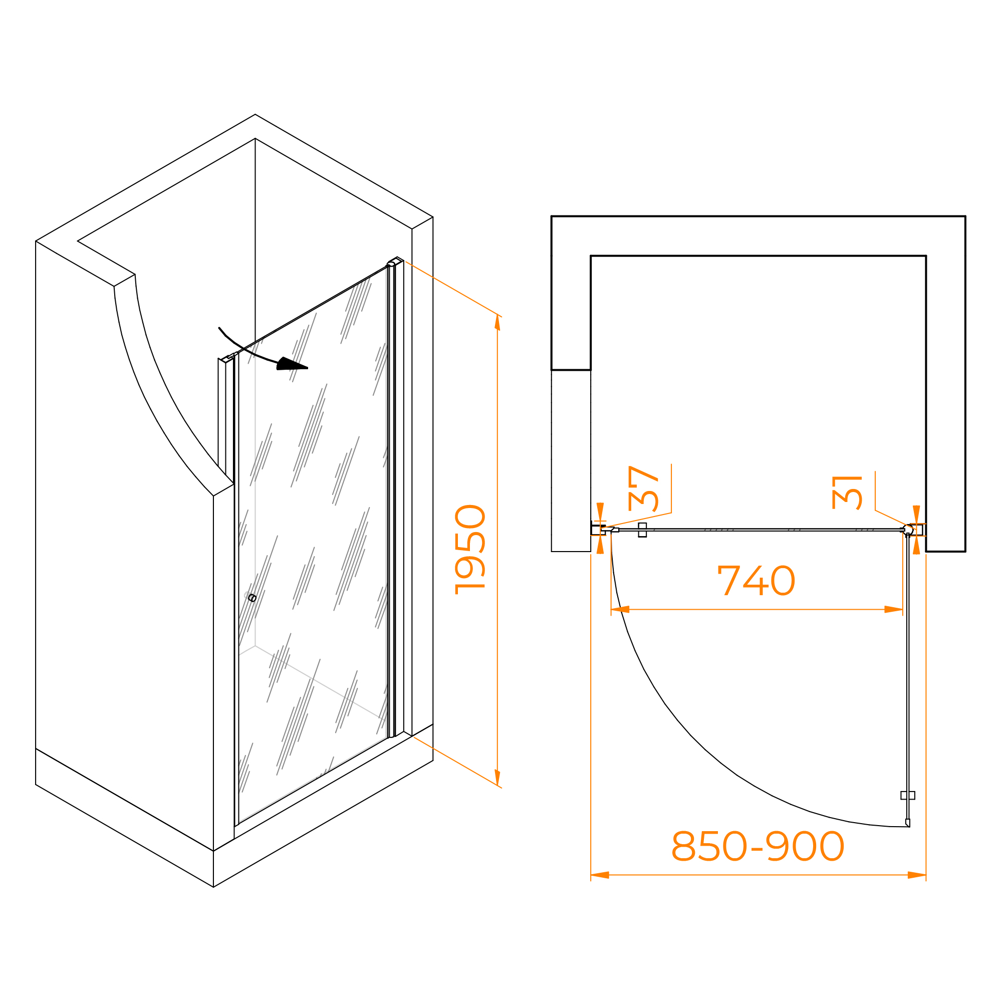 Профиль двери выполнен в стильном хромовом цвете, что придает ему элегантный и современный внешний вид. Конструкция дверей распашные, что дает возможность эффективно использовать пространство ванной комнаты. Двери оборудованы регулируемым профилем, что позволяет настроить двери под размеры вашей ванной комнаты.