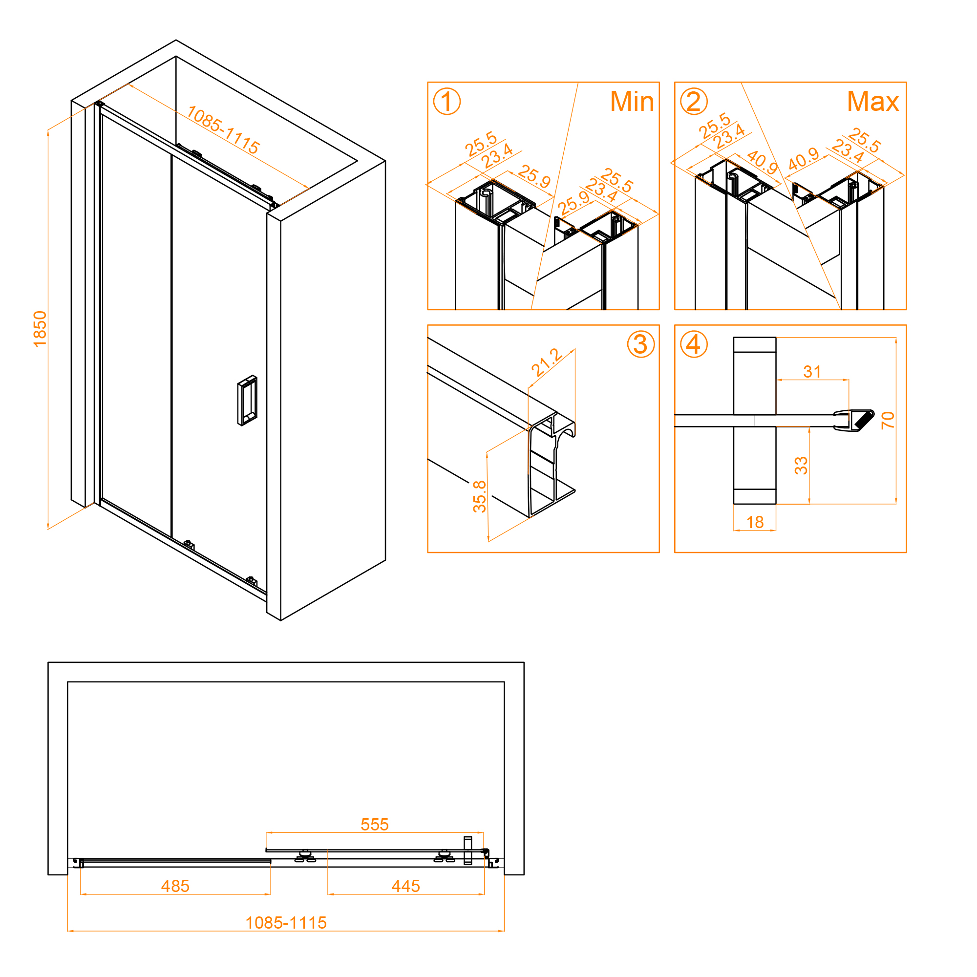 Размеры с диапазоном регулировок
